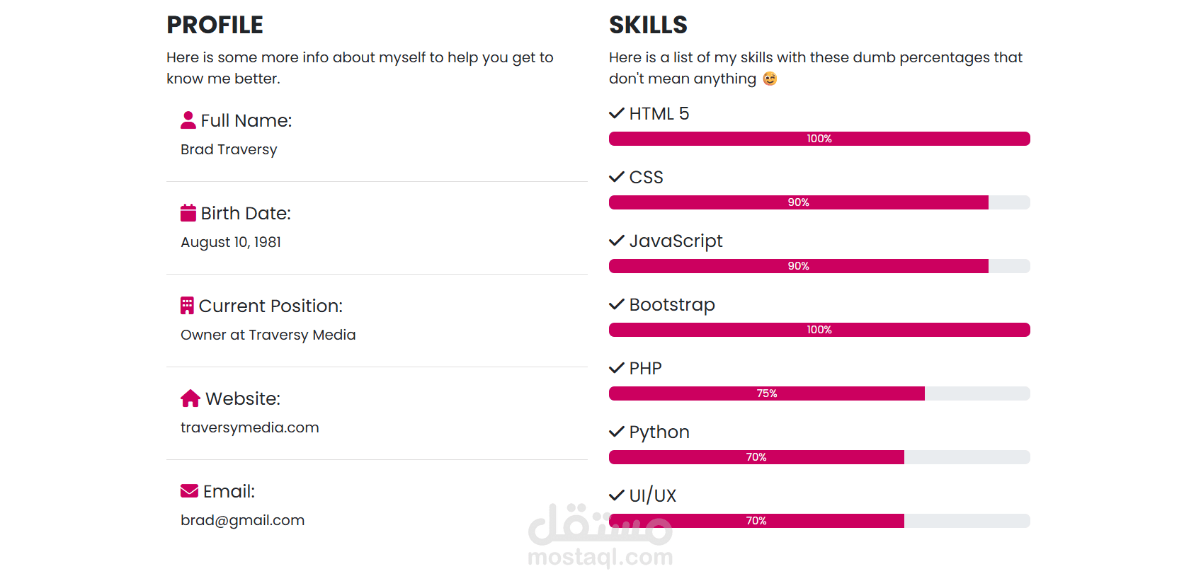 وتم أستخدام مايلي في تصميم الCV