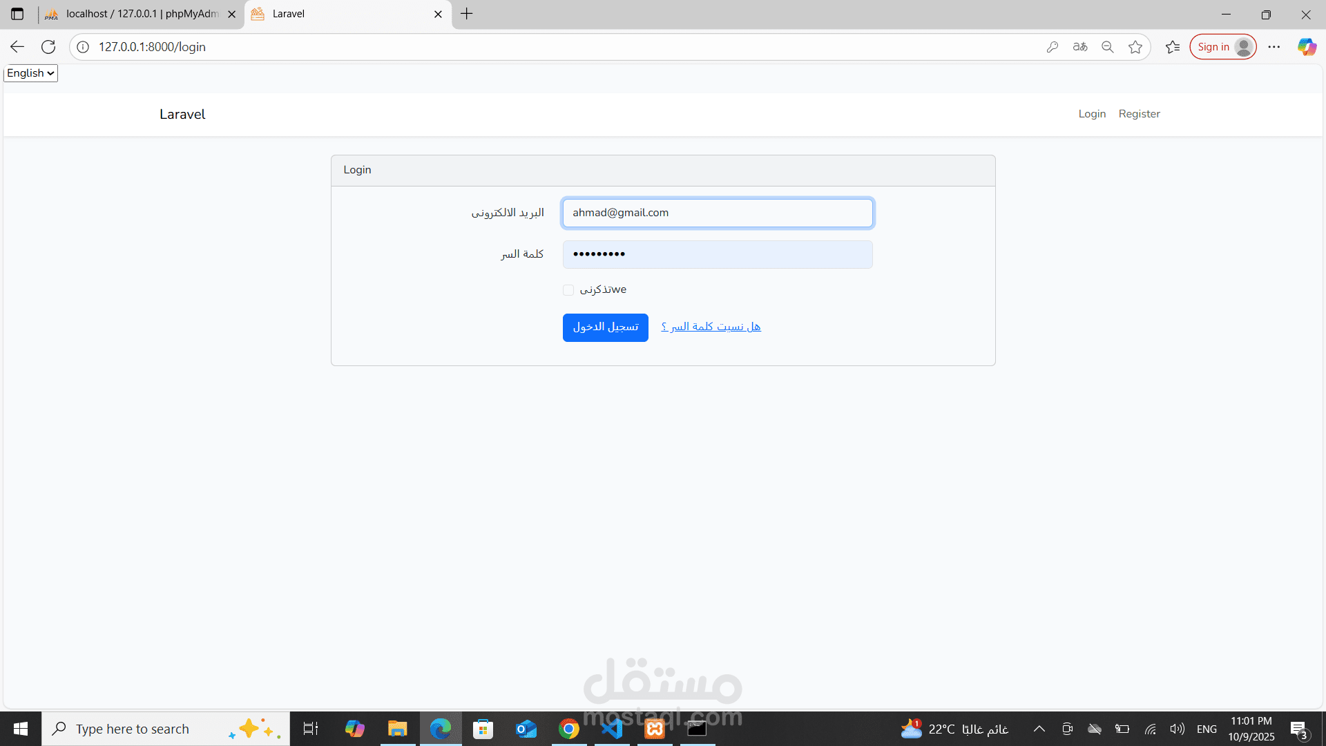 ستحصل في النهاية على مشروع Laravel جاهز للعمل بالكامل وقابل للتطوير مستقبلاً.