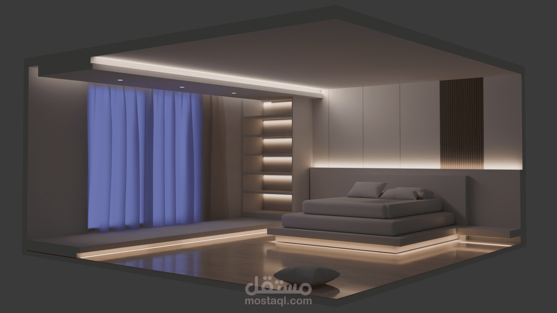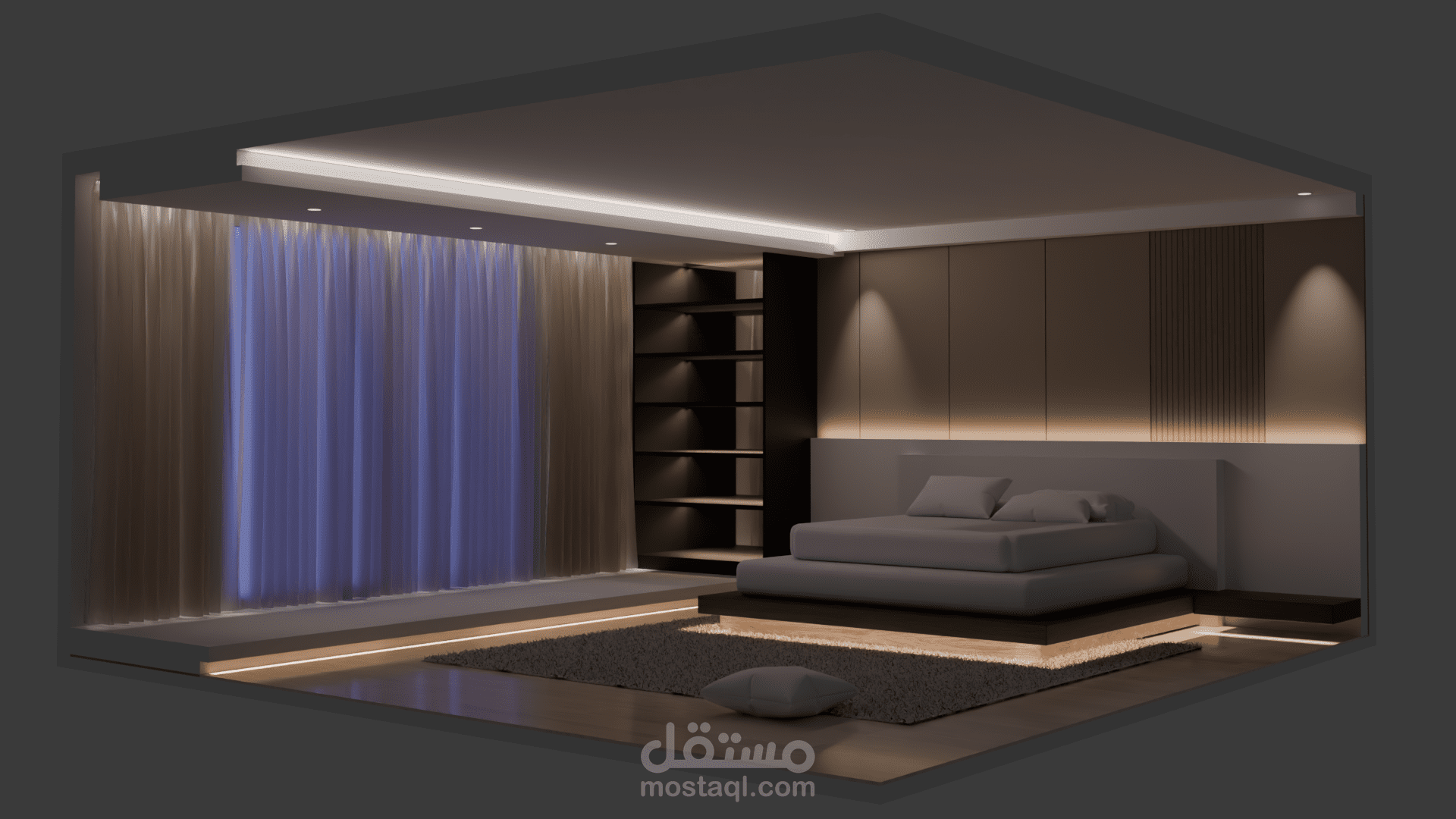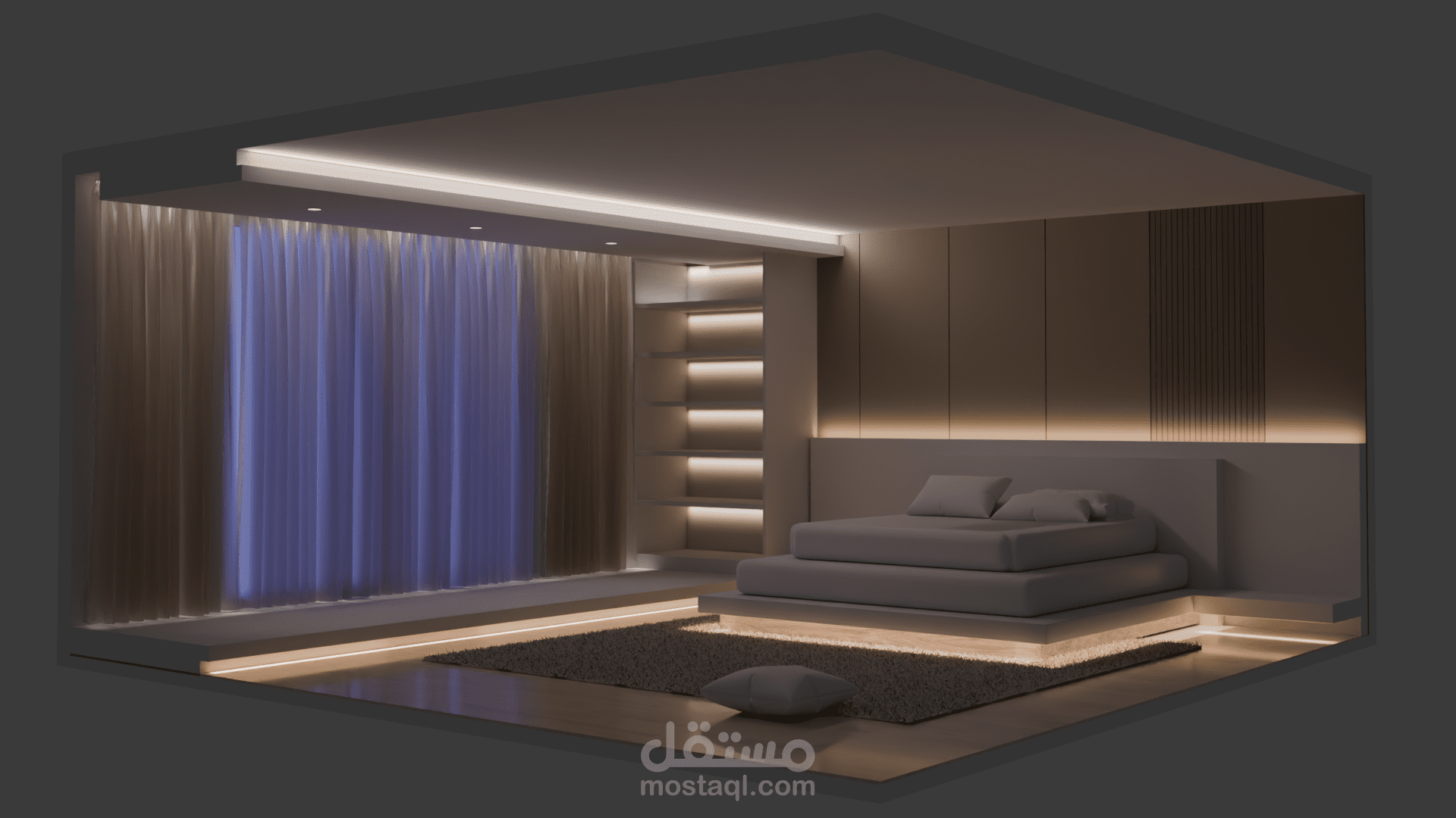 مشهد داخلي لغرفة نوم باستخدام كامل ل Blender
