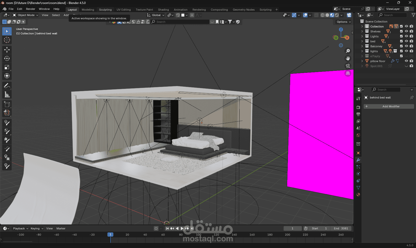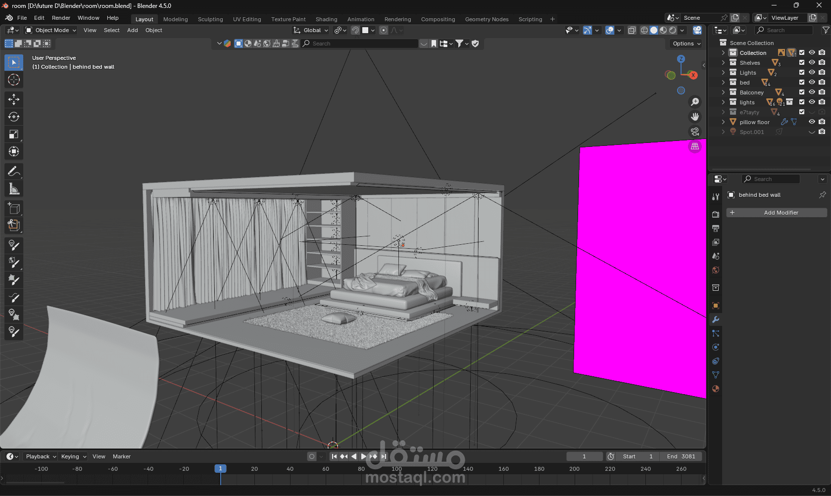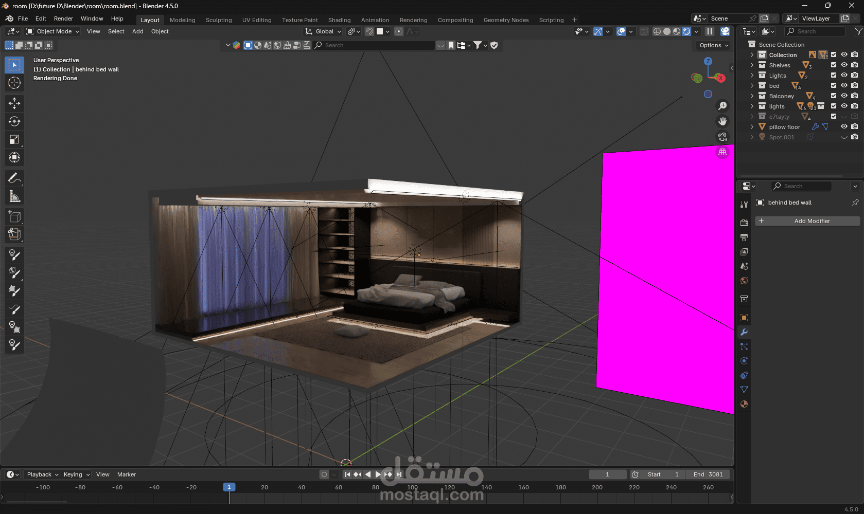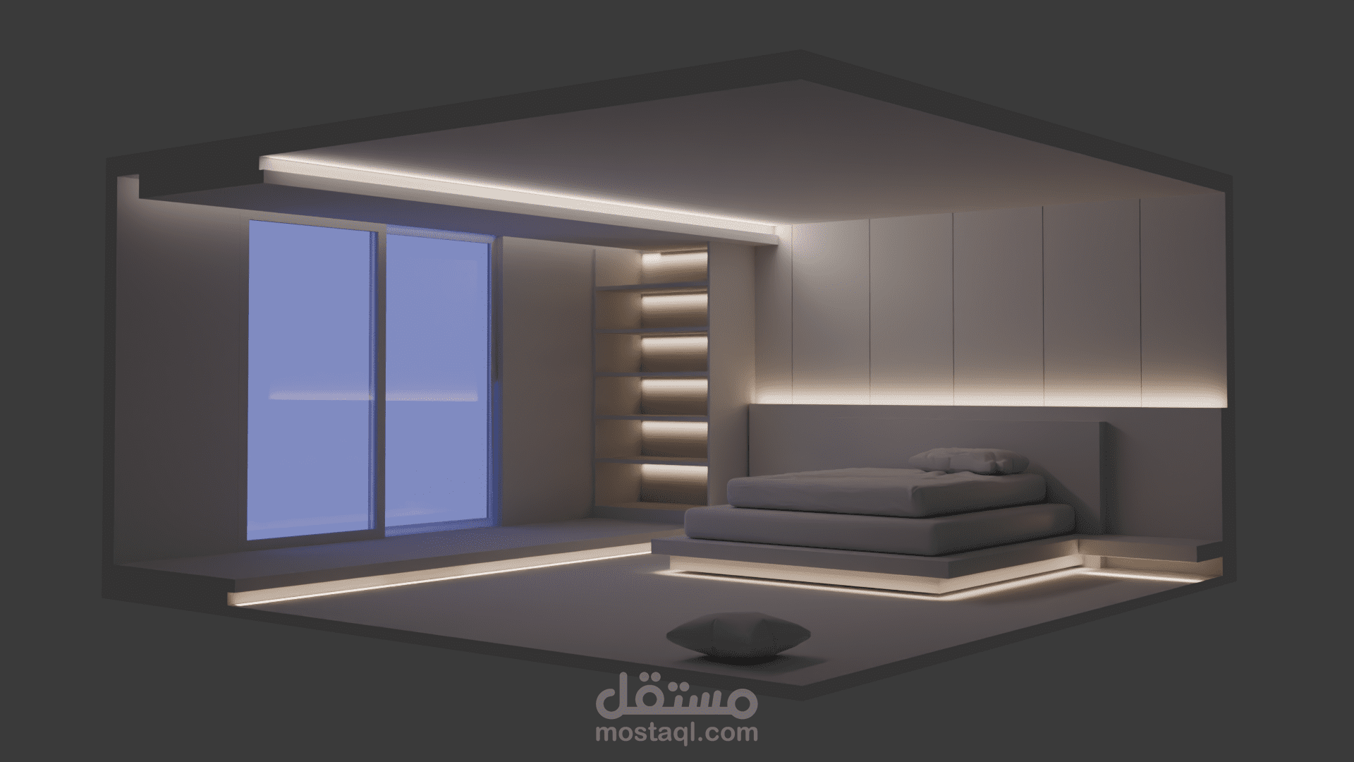 مشهد داخلي لغرفة نوم باستخدام كامل ل Blender