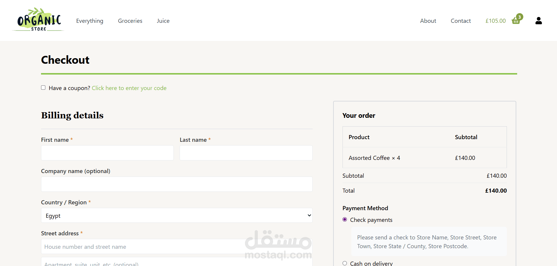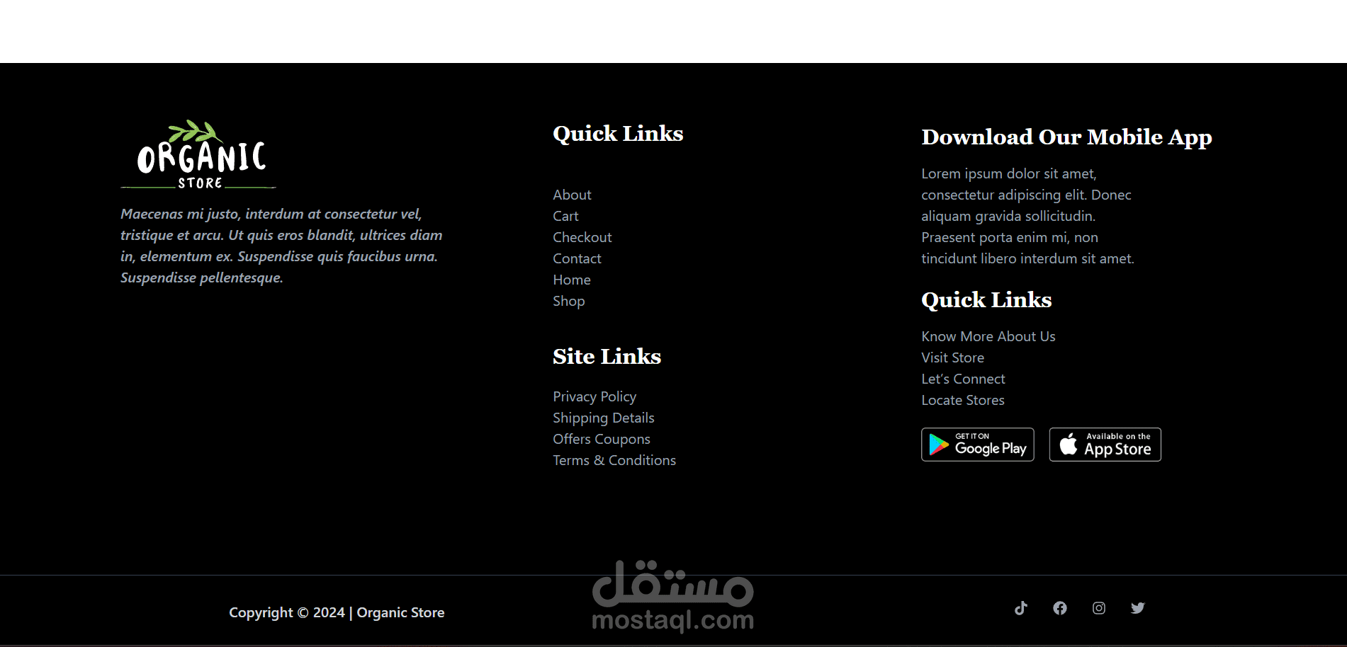 قمت بتطوير موقع إلكتروني متكامل لبيع المنتجات العضوية باستخدام تقنيات حديثة مثل React وNode.js وPostgreSQL.