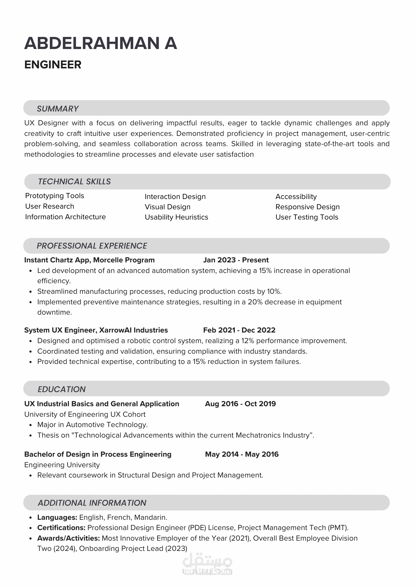 سأصمم سيرة ذاتية CV يجعلك مرشحًا متميزًا لطلب الوظيفة الخاص بك، وسيكون سيرة ذاتية احترافية عالية الجودة. أو أعد تصميم سيرتك الذاتية الحالية التي ستسلط الضوء على مهاراتك وخبراتك واحترافيتك وتلفت انتباه الشركة إليك.