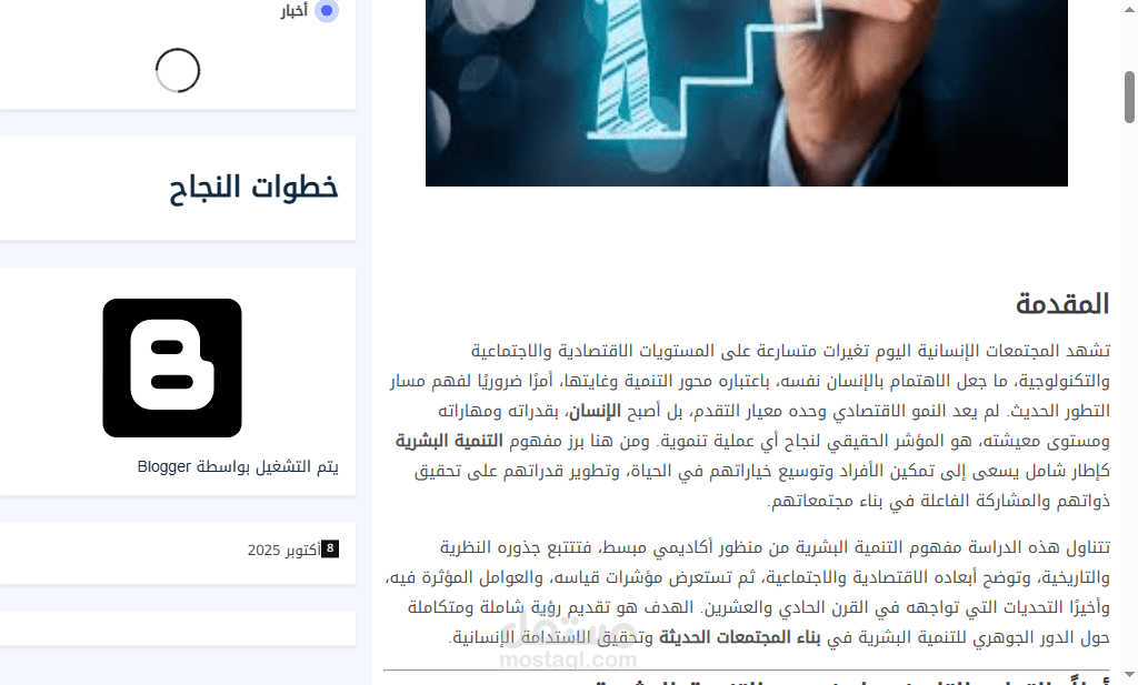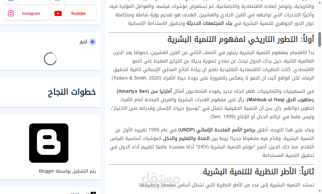 المقال مدعوم بمراجع أكاديمية معتمدة بأسلوب (APA) ويشتمل على عرض نظري وتحليلي يعكس فهمًا واسعًا للتنمية البشرية وربطها بالواقع الاجتماعي والاقتصادي المعاصر.