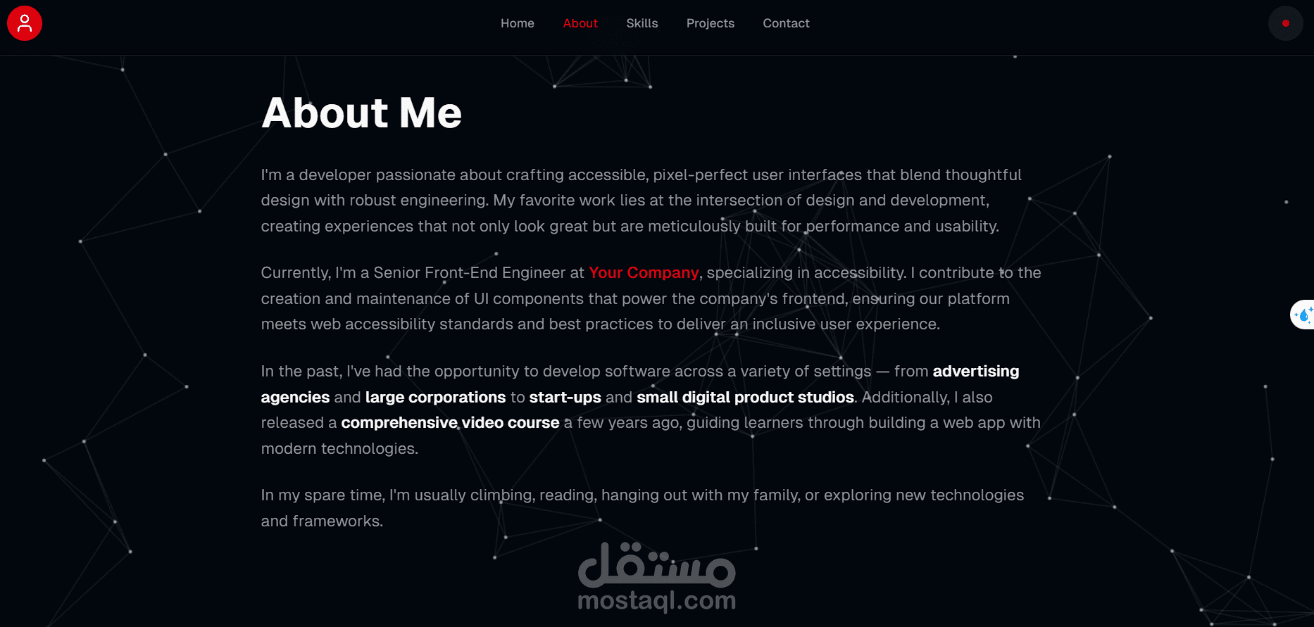 البورتفوليو هو المعرض الذي يعرض نبذة عنك وعن مهاراتك وعن مشاريعك وأيضا خبراتك السابقة والحالية في المجال بحيث يكون مقنع وجذاب يشد أصحاب العمل ويفتح لك أبوابا كثيرة. فقد قمت بتنفيذ العديد من ال portfolio لكثير من زملائي ونتيجة لهذا حصلوا على وظائف جيدة عندما تركوا معرض أعمالهم يتحدث عنهم.