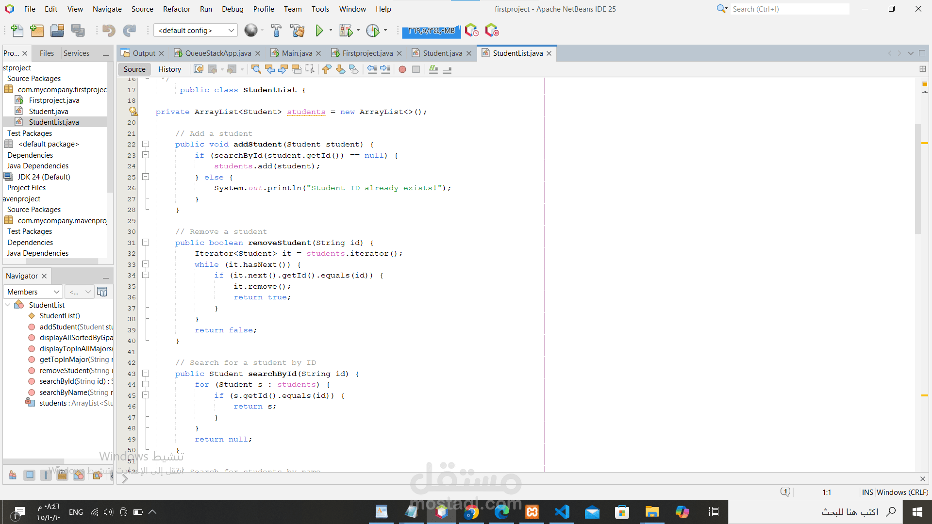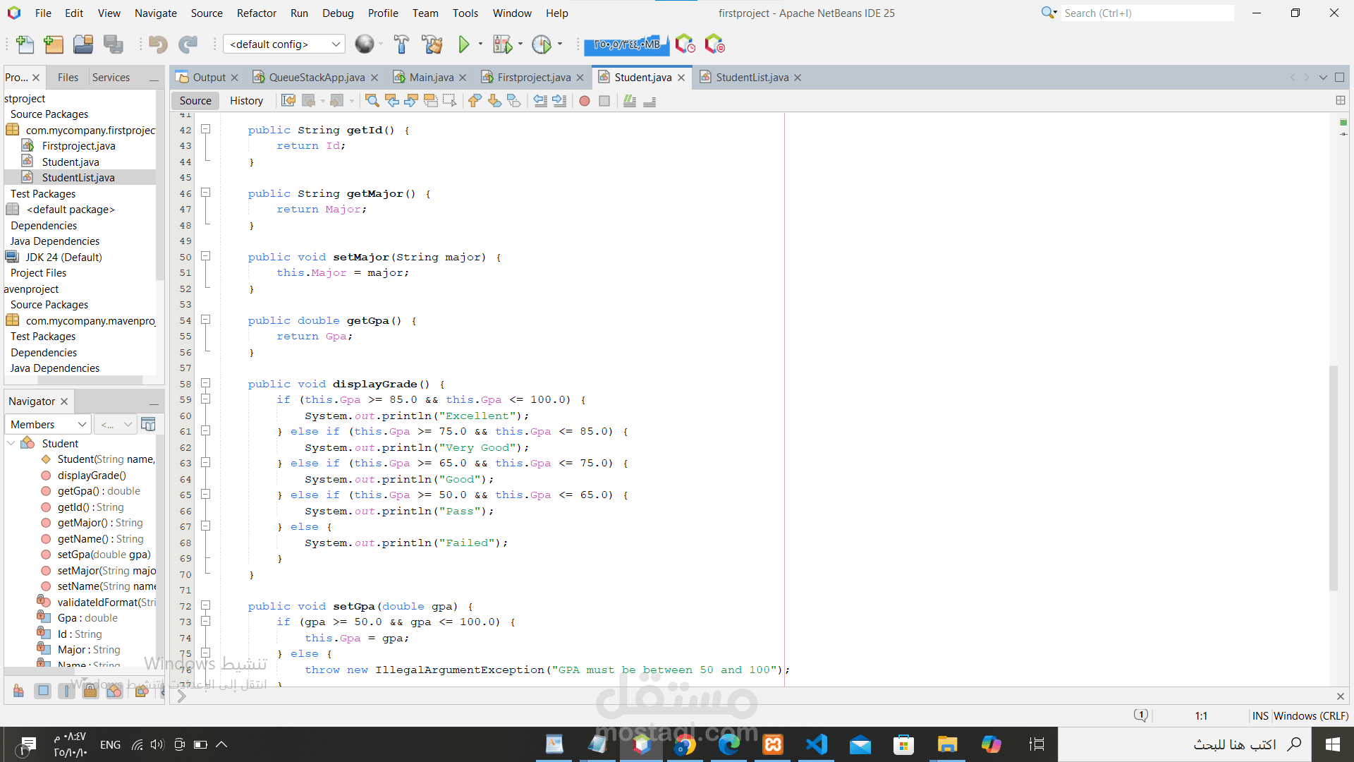 تطبيق متكامل لإدارة بيانات الطلاب قمت ببنائه باستخدام لغة Java، مع التركيز على مبادئ البرمجة كائنية التوجه (OOP) واستخدام هياكل البيانات المتقدمة.