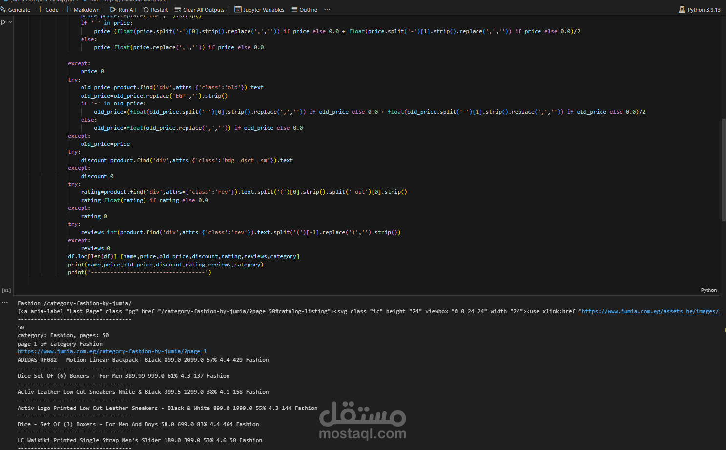 قمت بتطوير أداة لاستخراج البيانات باستخدام لغة Python ومكتبة Selenium لجمع بيانات المنتجات من موقع جوميا بشكل آلي.