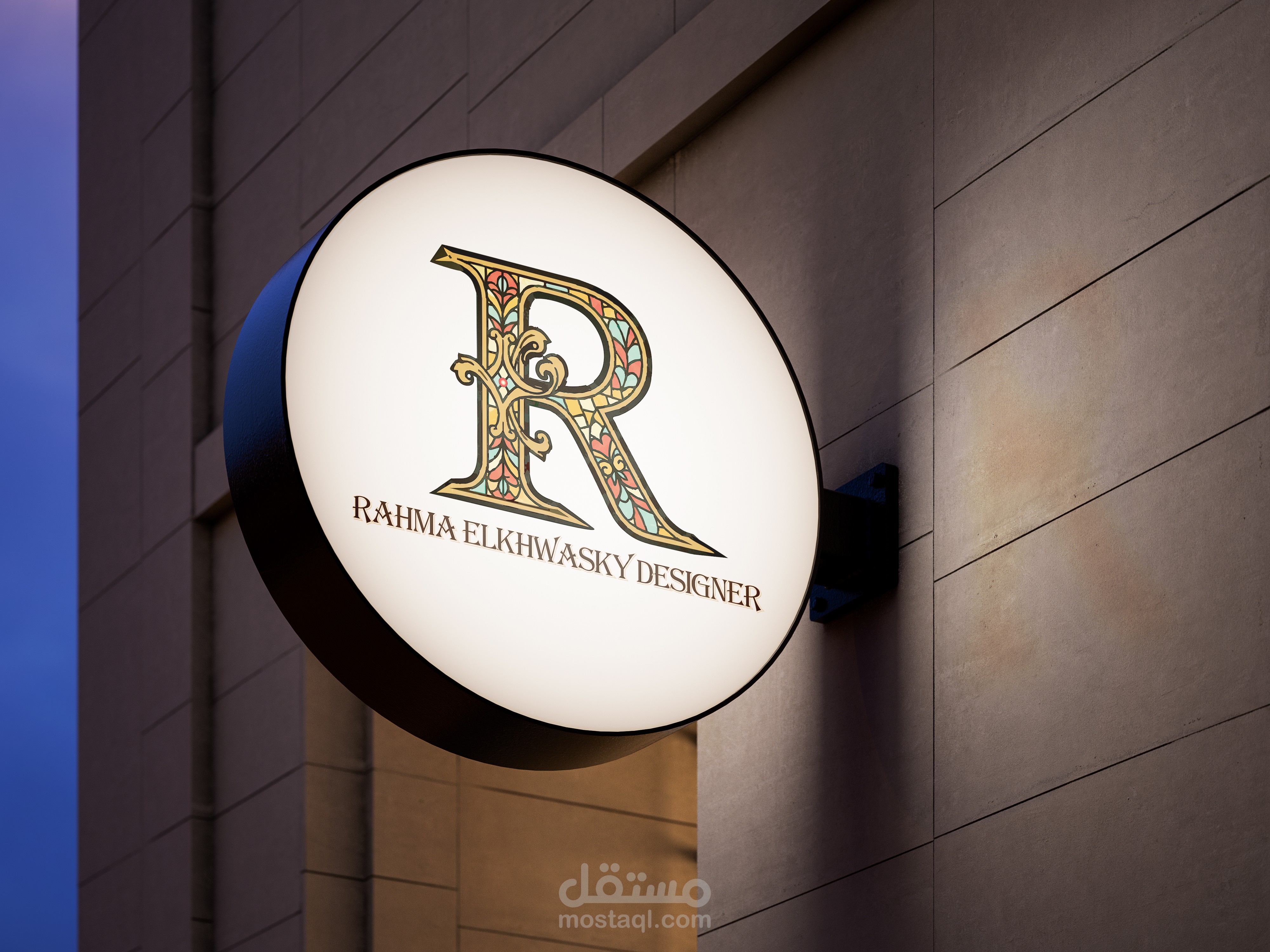 3- تصميم الشعار باللغة اللي تفضلها (عربي، إنجليزي، أو الاتنين معًا)