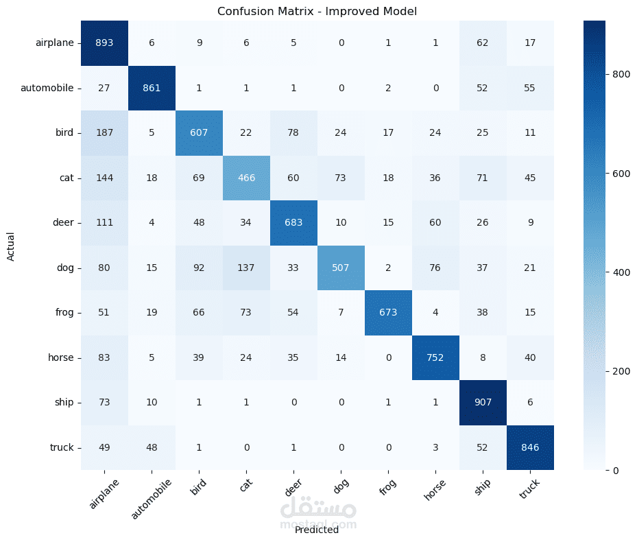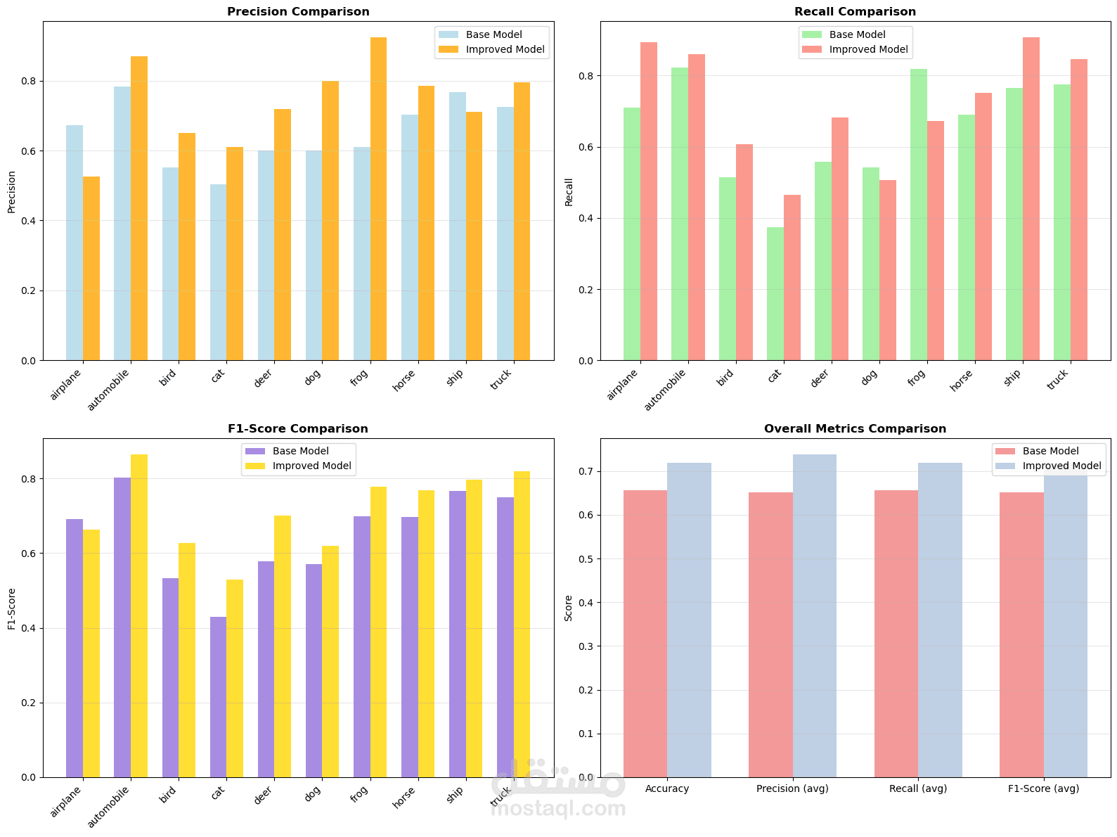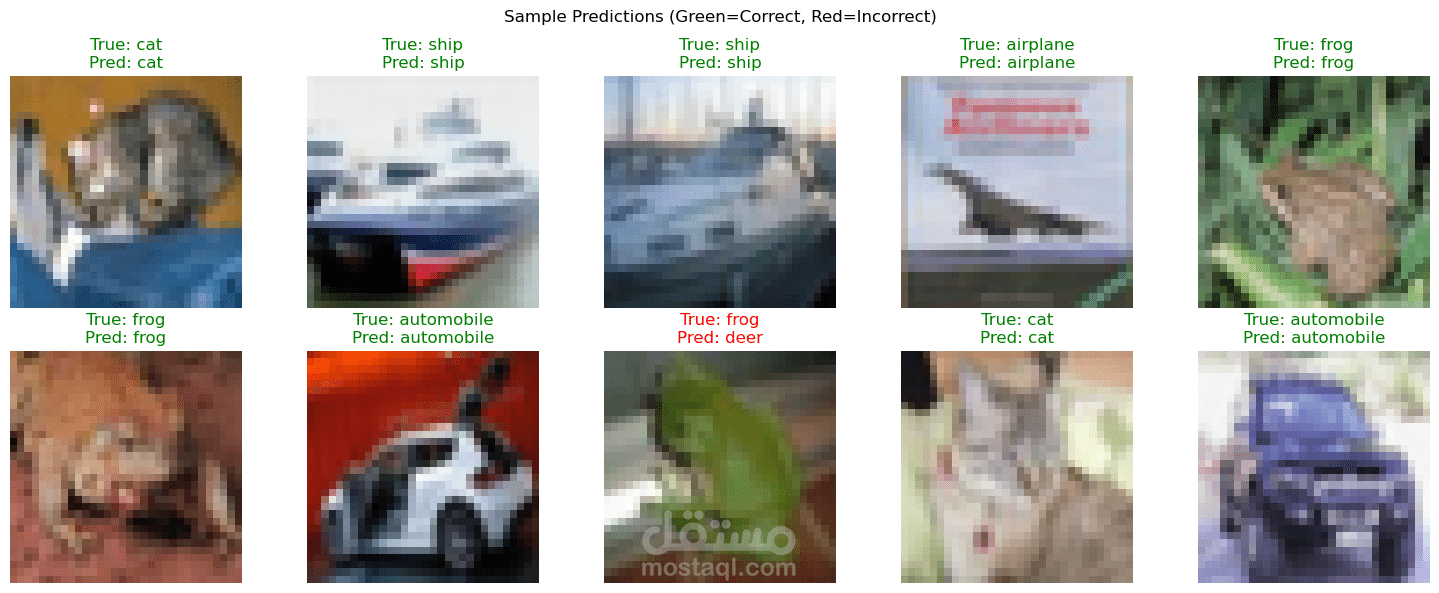 في هذا المشروع قمت ببناء نموذجين مختلفين لتصنيف الصور من مجموعة بيانات CIFAR-10 التي تحتوي على 60,000 صورة مقسمة إلى 10 فئات مختلفة مثل الطائرات، السيارات، الطيور، والقطط.