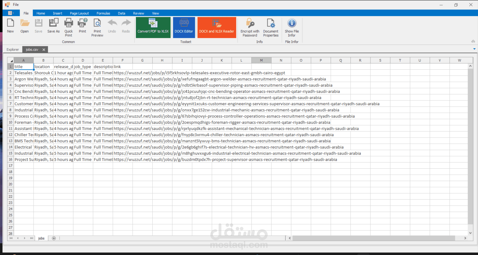 بعد استخراج البيانات، يتم تخزينها في ملف CSV منسّق بشكل يسهل استخدامه لاحقًا في التحليل، أو العرض، أو الاستخدام في أنظمة التوظيف الداخلية.
