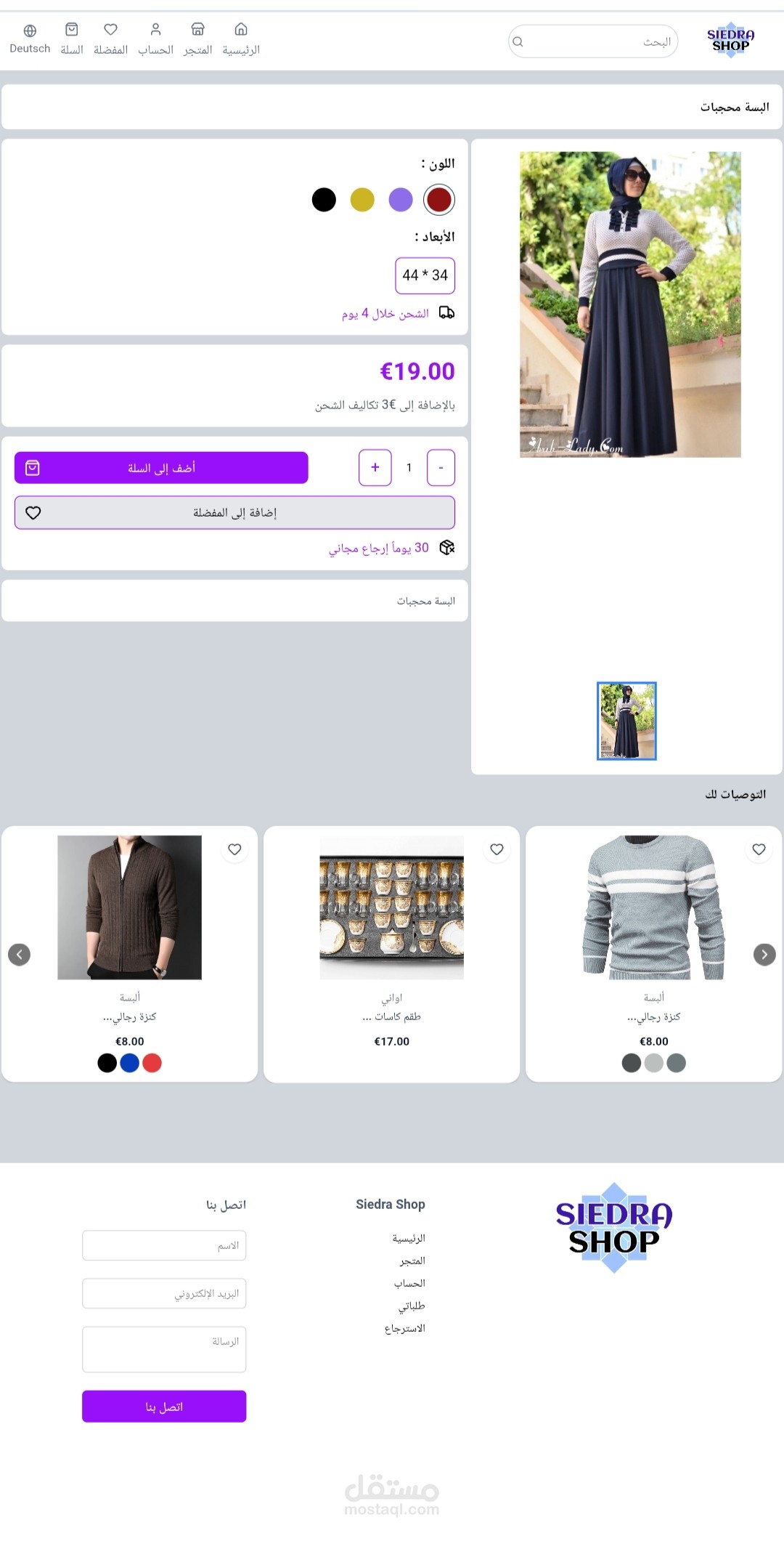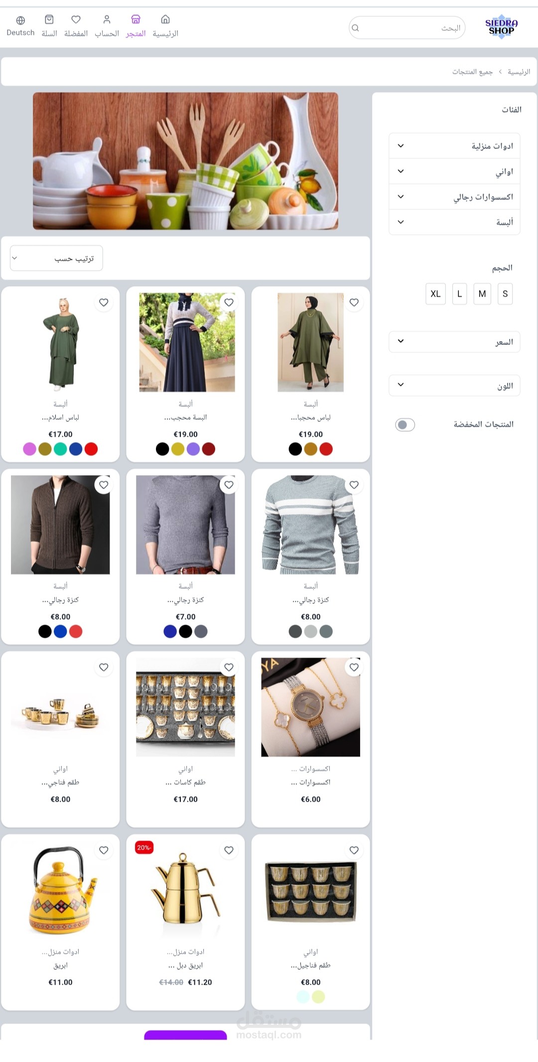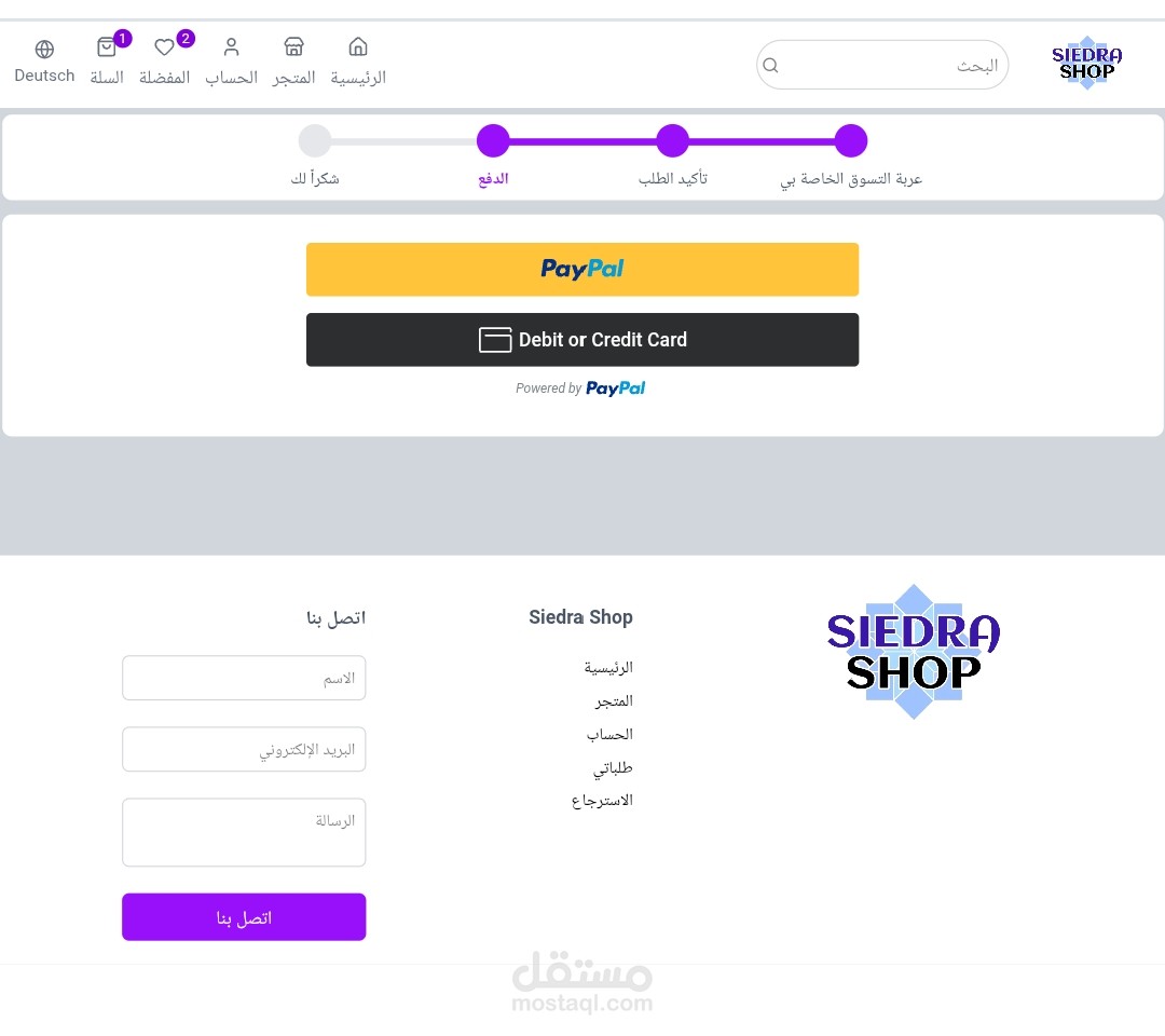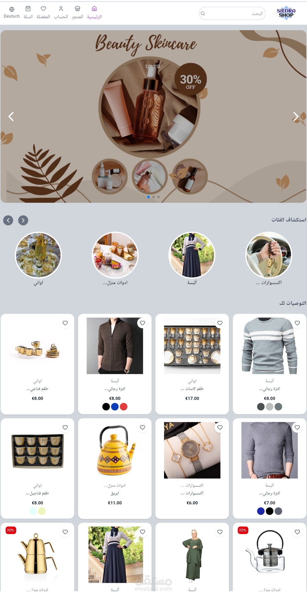 تم تطوير موقع تجارة إلكترونية متعدد اللغات يُسمى “SIEDRA SHOP” يدعم اللغتين العربية والألمانية مع دعم الاتجاهين RTL / LTR لتجربة استخدام مرنة وسلسة.