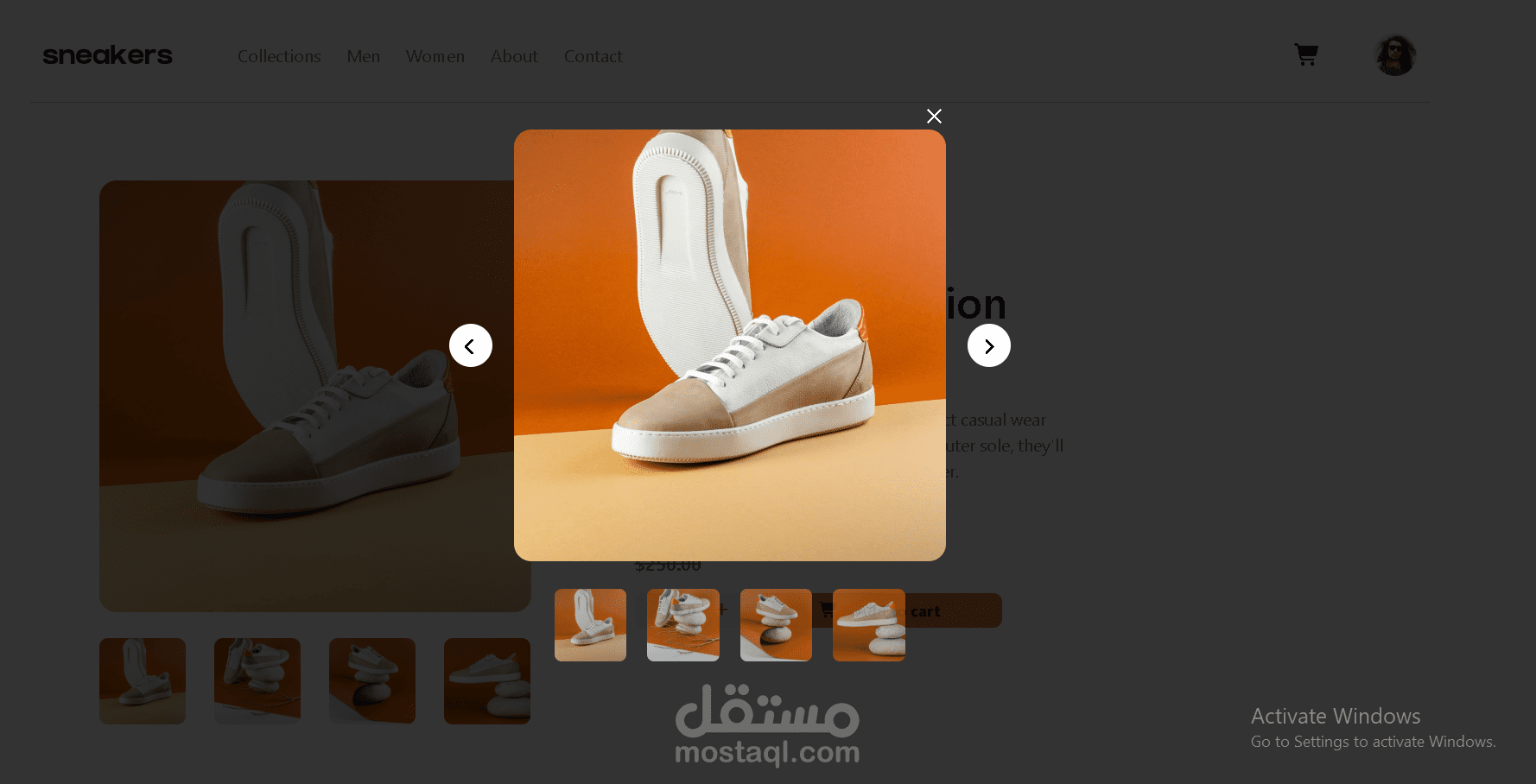Features include image lightbox gallery with navigation, interactive cart functionality, and clean Bootstrap layout.