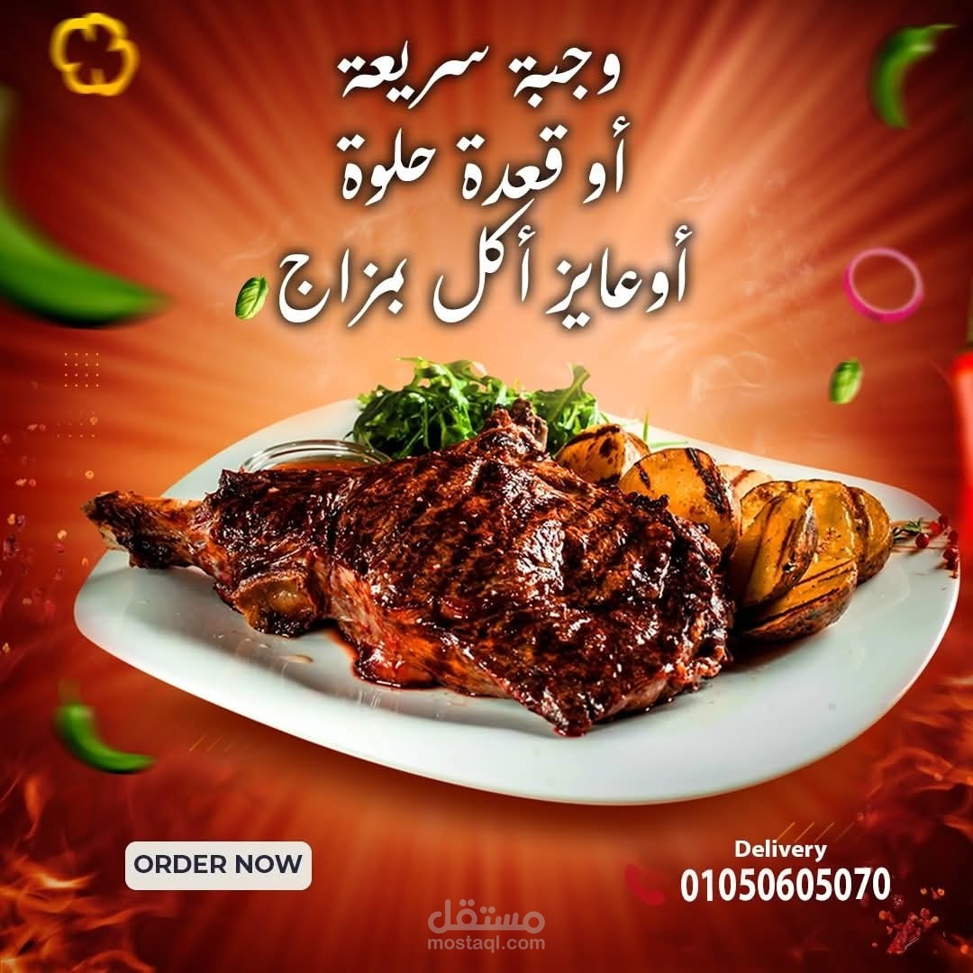 الهدف من التصميم هو إبراز جودة الطعام والمذاق البلدي الأصيل بطريقة احترافية تناسب الإعلانات الرقمية ووسائل التواصل الاجتماعي
