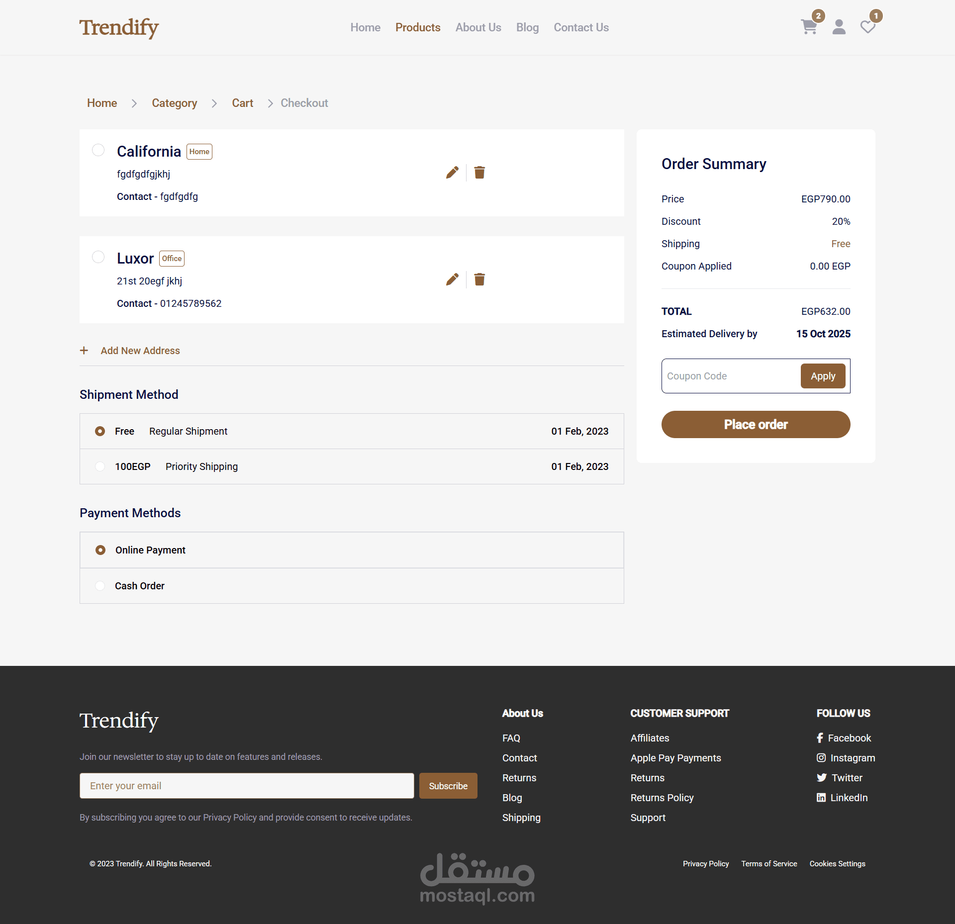 ? عربة التسوق والدفع (Cart & Checkout): نظام متكامل لإدارة الطلبات والدفع.