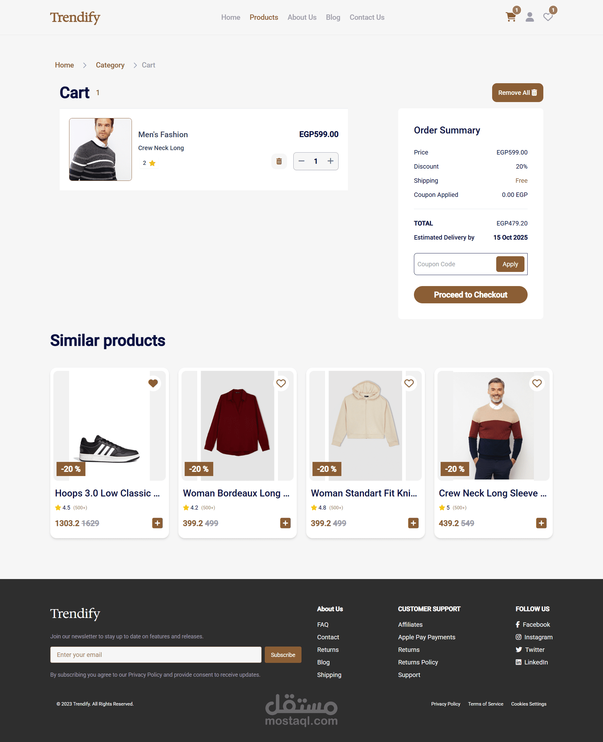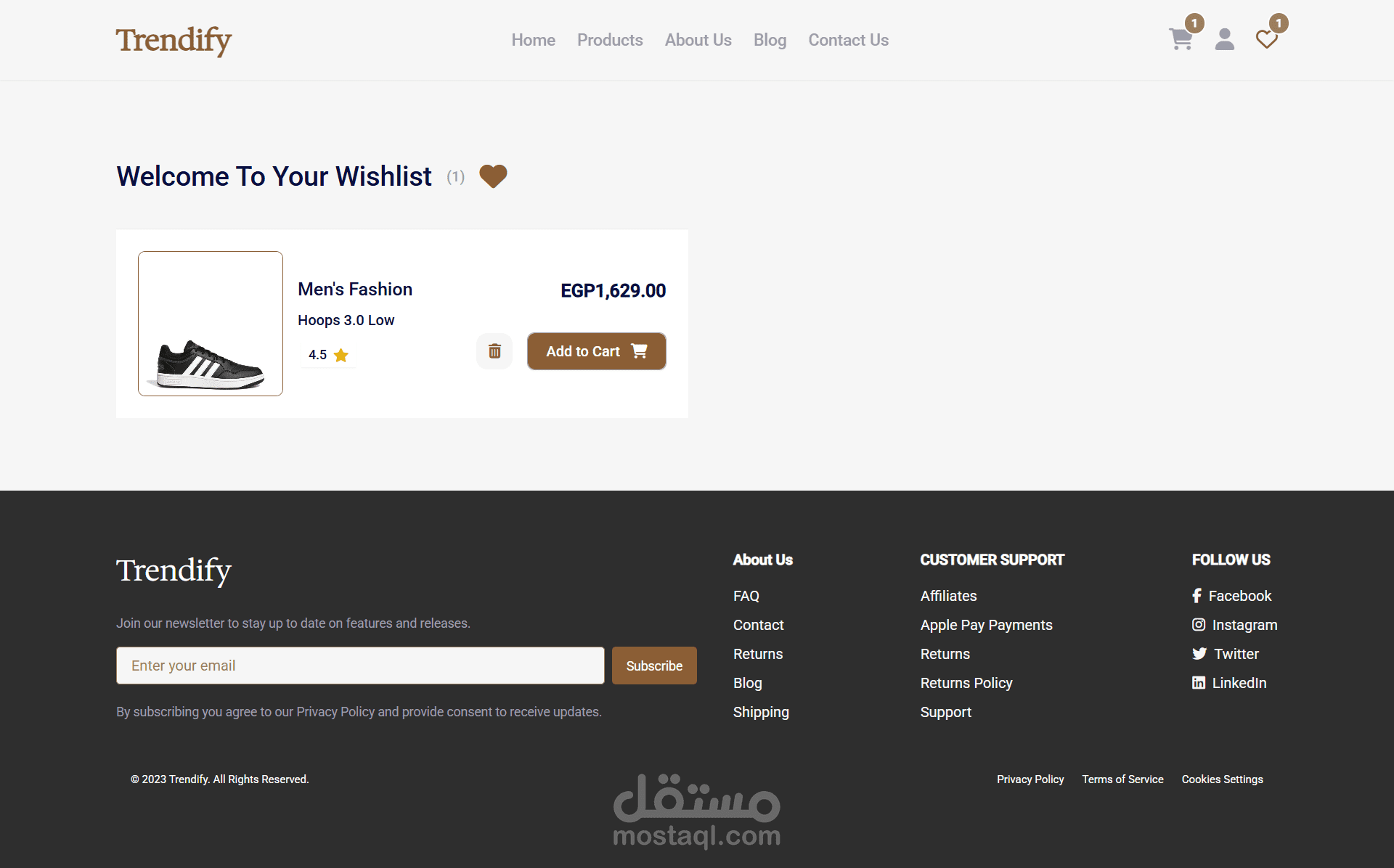 الصفحة الرئيسية (Home): تعرض المنتجات المميزة والترند بطريقة جذابة ومنظمة.