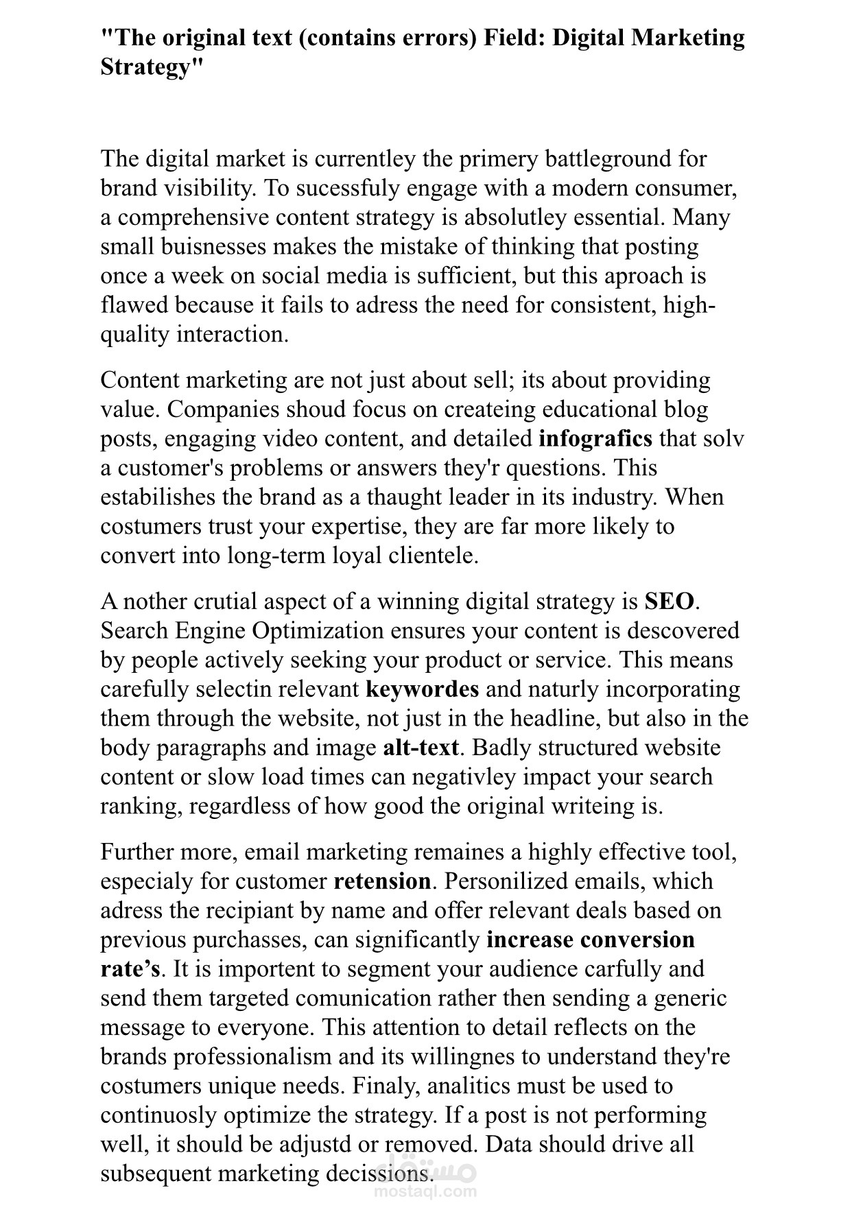 A recent work sample demonstrating my skills in comprehensive proofreading for long English texts (400+ words).