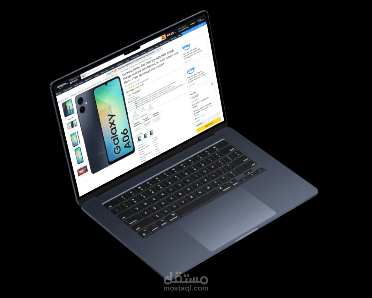 قمت بتصميم صفحة تفاصيل المنتج (Product Details Page) لموقع Amazon باستخدام برنامج Figma، مع التركيز على عرض المعلومات الأساسية للمنتج بطريقة منظمة وواضحة، تمنح المستخدم تجربة تصفح مريحة وسلسة.