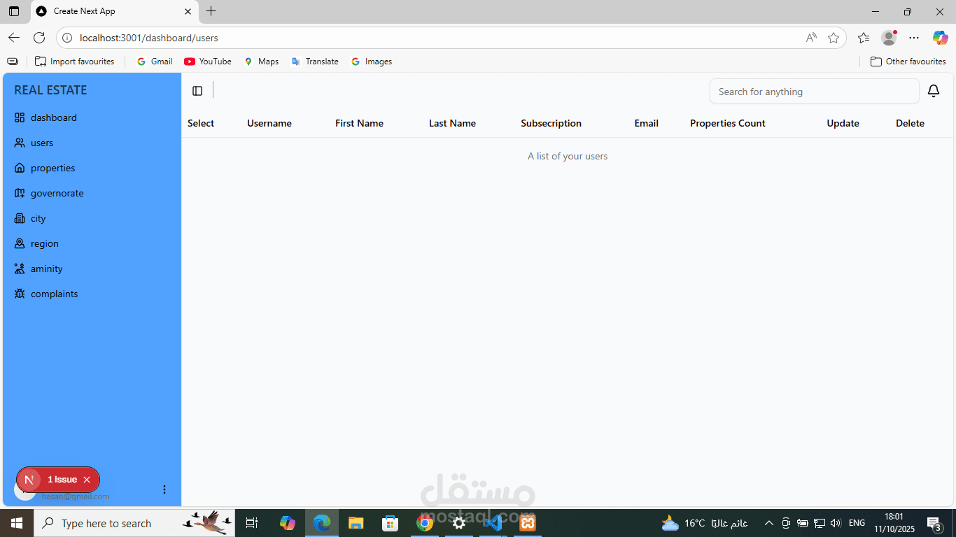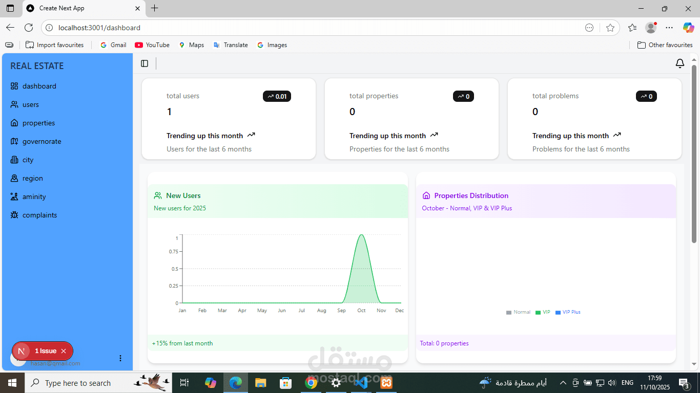 قمت بانشاء واجهات تحكم لمشروع التخرج تقوم هذه الواجهات بالتحكم بقاعدة بيانات الموقع بنسبة كبيرة تشمل هذه الواجهات رؤية كافة admins وال users وحذفهم ومراجعة بيانات وتفاصيل العقار وقبولة أو حذفه ومراجعة الشكاوي وحلها وحذفها واضافة ما يلزم من مناطق ومحافظات ومدن ومراجعة الدفع في الموقع.