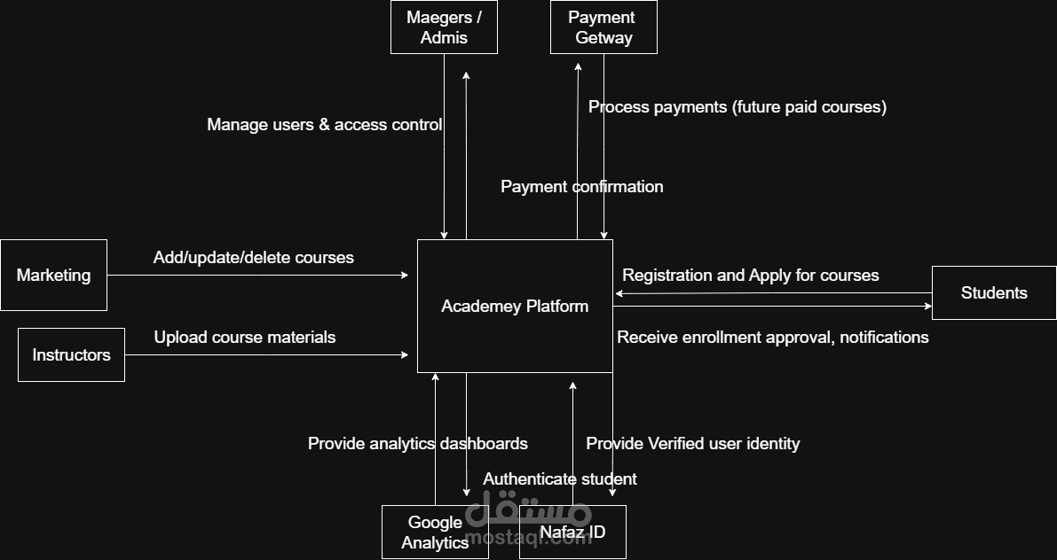 في هذا المشروع قمت بتحليل نظام أكاديمية تعليمية إلكترونية بهدف تنظيم عمليات التسجيل والدورات والمدربين.