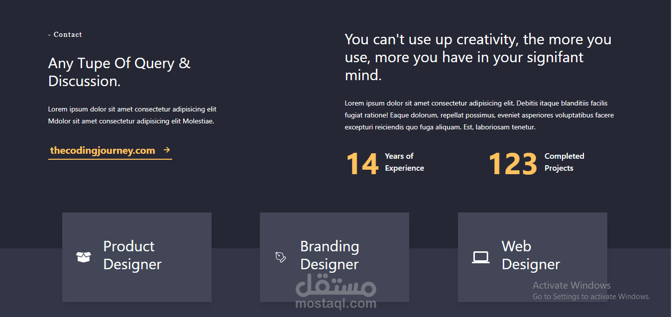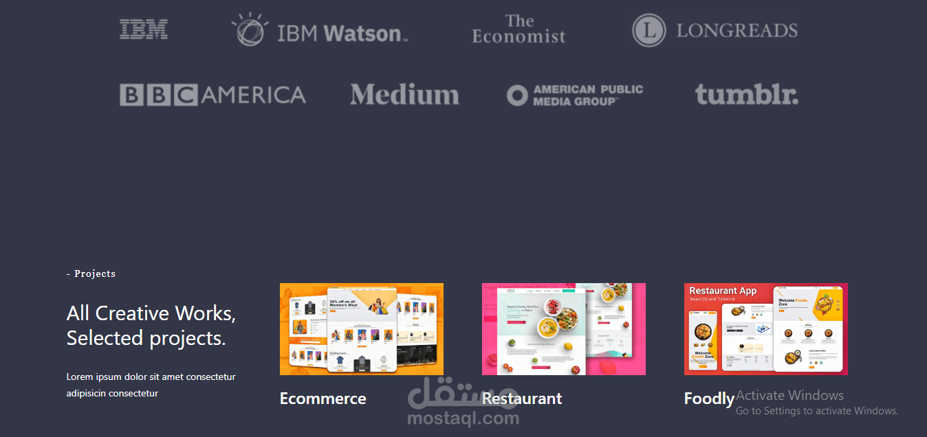 قسم أعمال (Projects / Portfolio) لعرض مشاريعك السابقة مع الصور والتفاصيل.