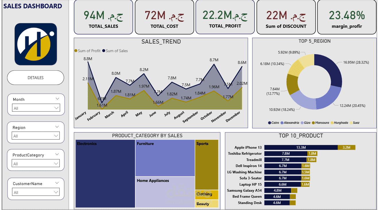 تحليل المبيعات حسب المنطقة والفئة والمنتج.