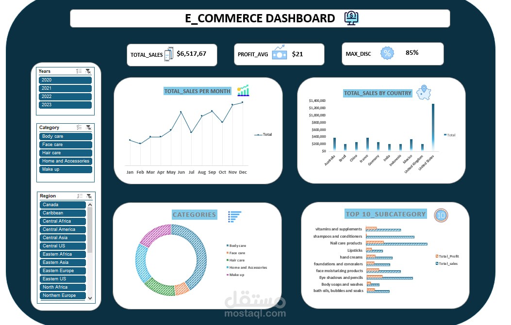 مشروع لوحة تحكم تجارة إلكترونية (E-Commerce Dashboard)