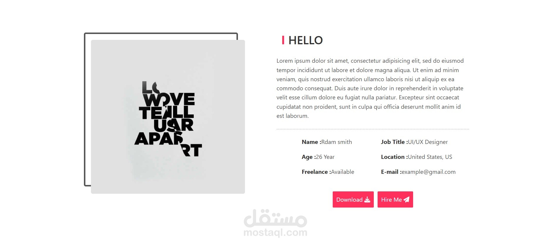 -إنشاء واجهة متكاملة لعرض النبذة، المهارات، والأعمال.