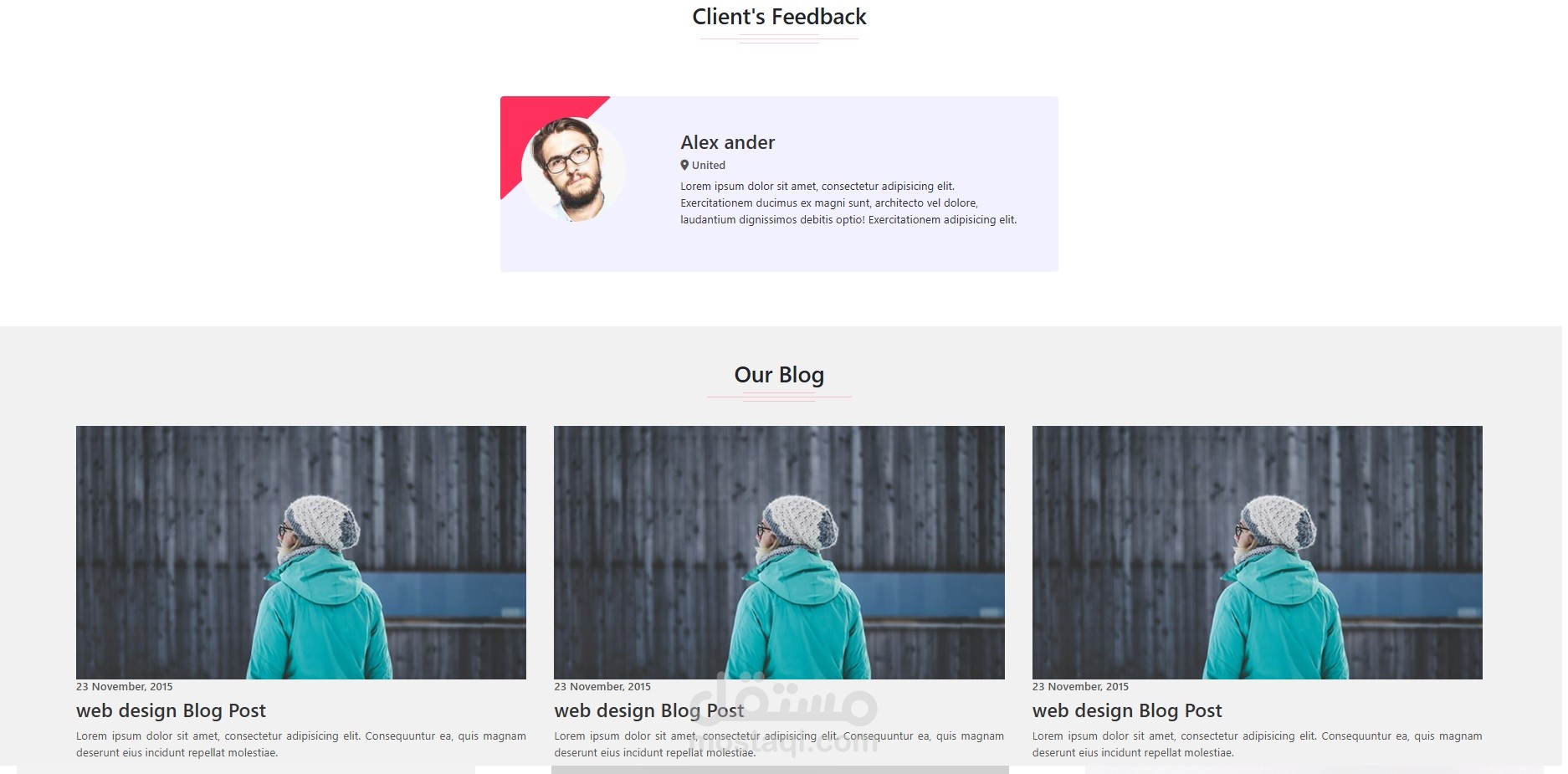 تم تنفيذ المشروع باستخدام HTML, CSS/SASS, JavaScript، وBootstrap مع التركيز على تنسيق الأقسام، تناسق الألوان، والتصميم المتجاوب.