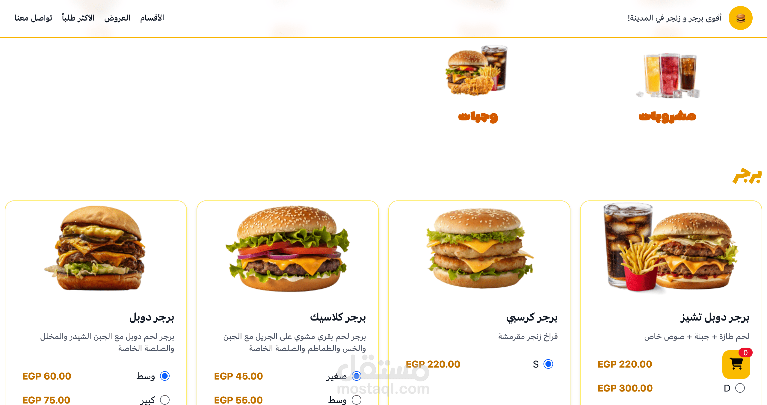 موقع لمطعم وجبات سريعة لعرض المنيوا الخاص به والتعديل عليه بسهولة