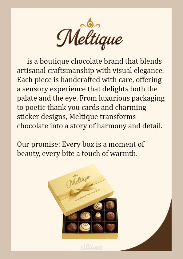 A luxury packaging project for Meltique chocolate, blending elegance with simplicity through tactile details and poetic backgrounds. The design was executed using a hybrid approach that combines hand-drawn illustration with digital precision, focusing on color harmony and visual movement.