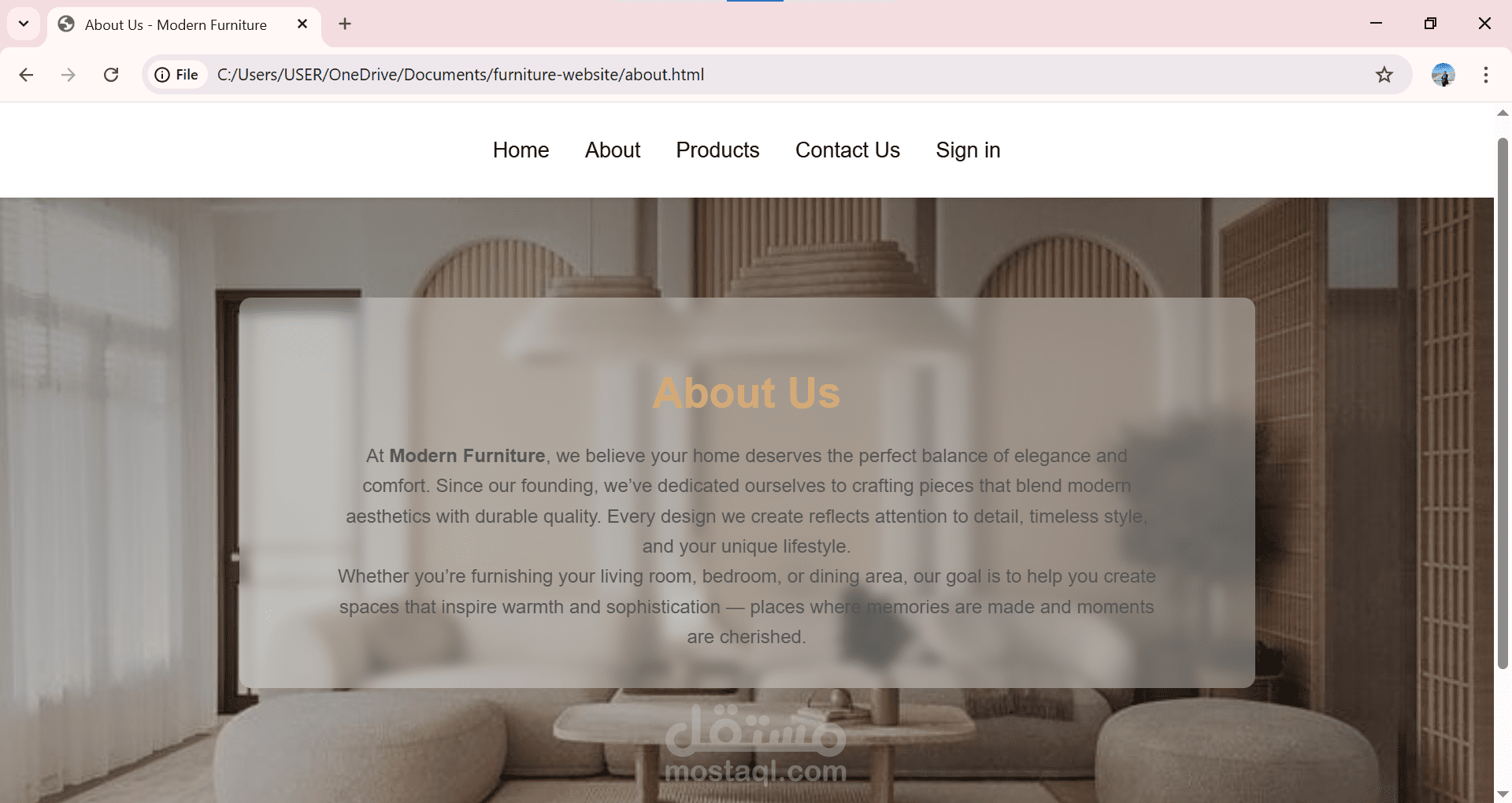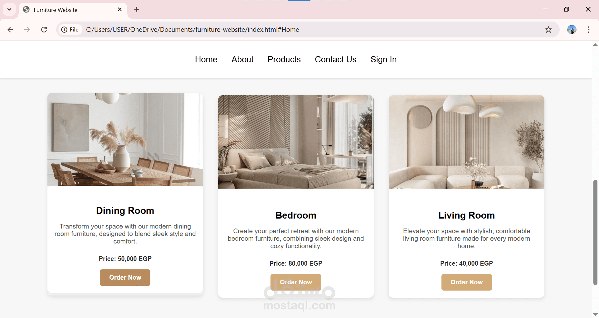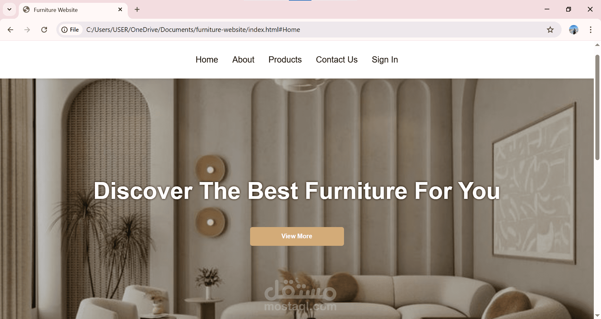 نفذت مشاريع صغيرة لتصميم مواقع شخصية ومواقع أعمال مثل موقع أثاث عصري (Furniture Website)، بهدف عرض المنتجات بطريقة أنيقة وعصرية.