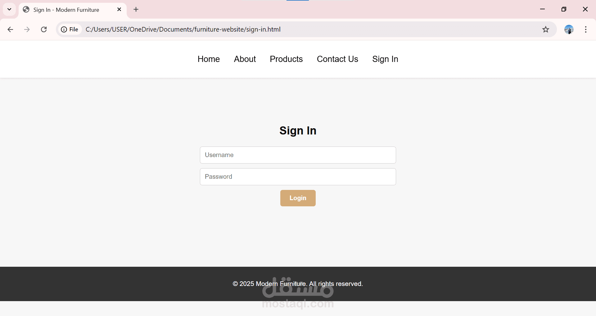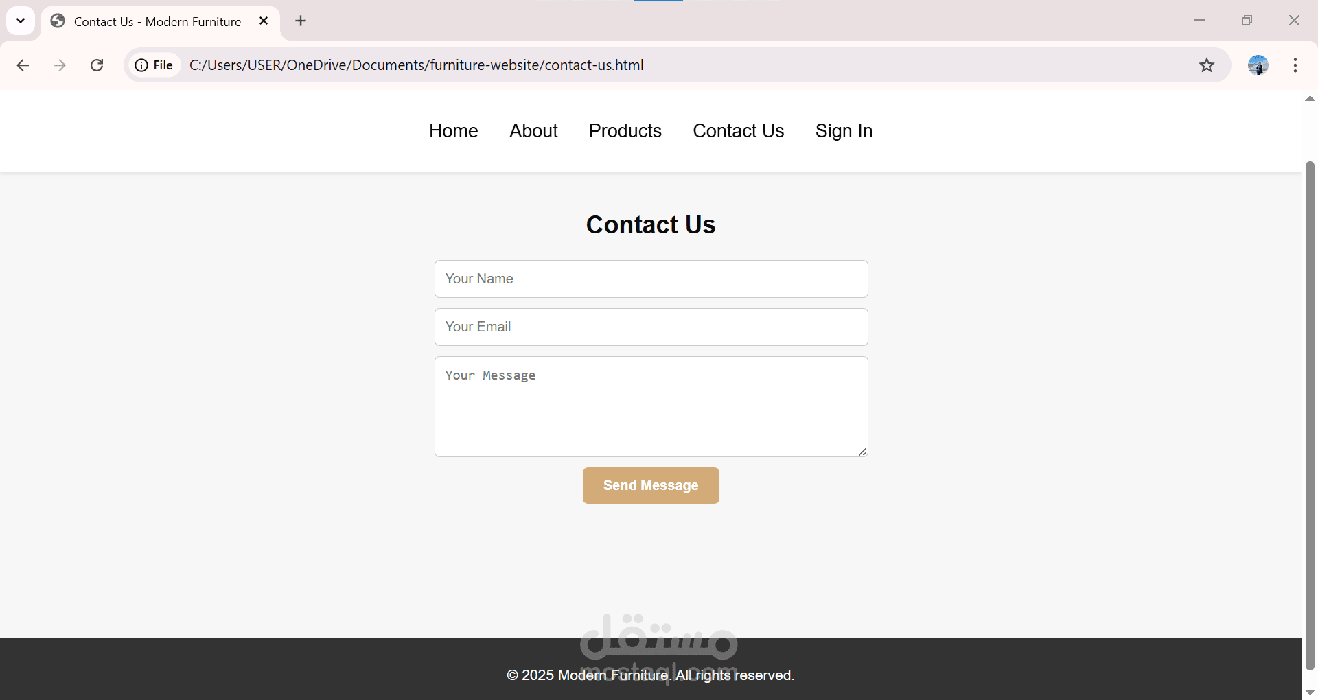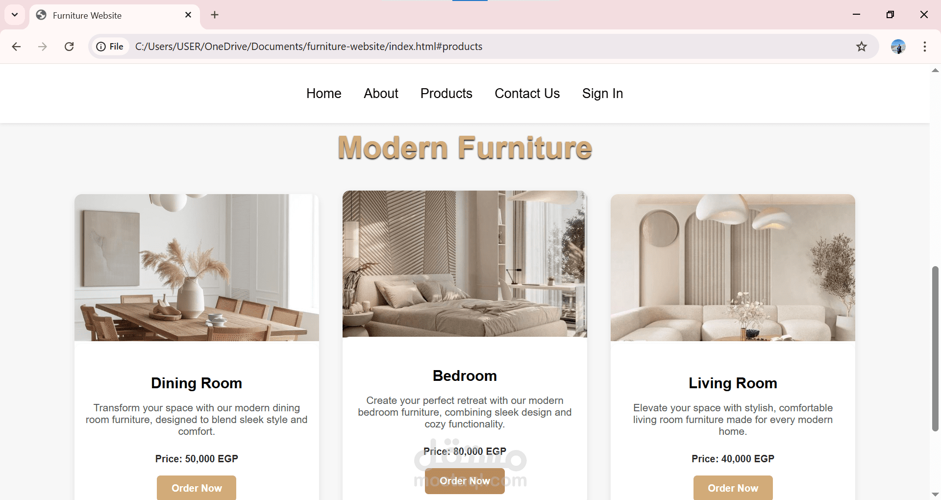 نفذت مشاريع صغيرة لتصميم مواقع شخصية ومواقع أعمال مثل موقع أثاث عصري (Furniture Website)، بهدف عرض المنتجات بطريقة أنيقة وعصرية.