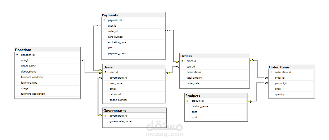 سأقوم بتصميم قاعدة بيانات بسيطة باستخدام SQL Server تناسب مشروعك أو موقعك، مع مراعاة العلاقات بين الجداول وتنظيم البيانات بشكل دقيق وواضح.