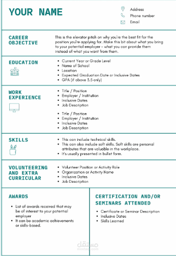 سأقوم بتصميم سيرتك الذاتية بأسلوب احترافي وجذاب يعكس خبراتك ومهاراتك بطريقة تبرز تميزك أمام أصحاب العمل.