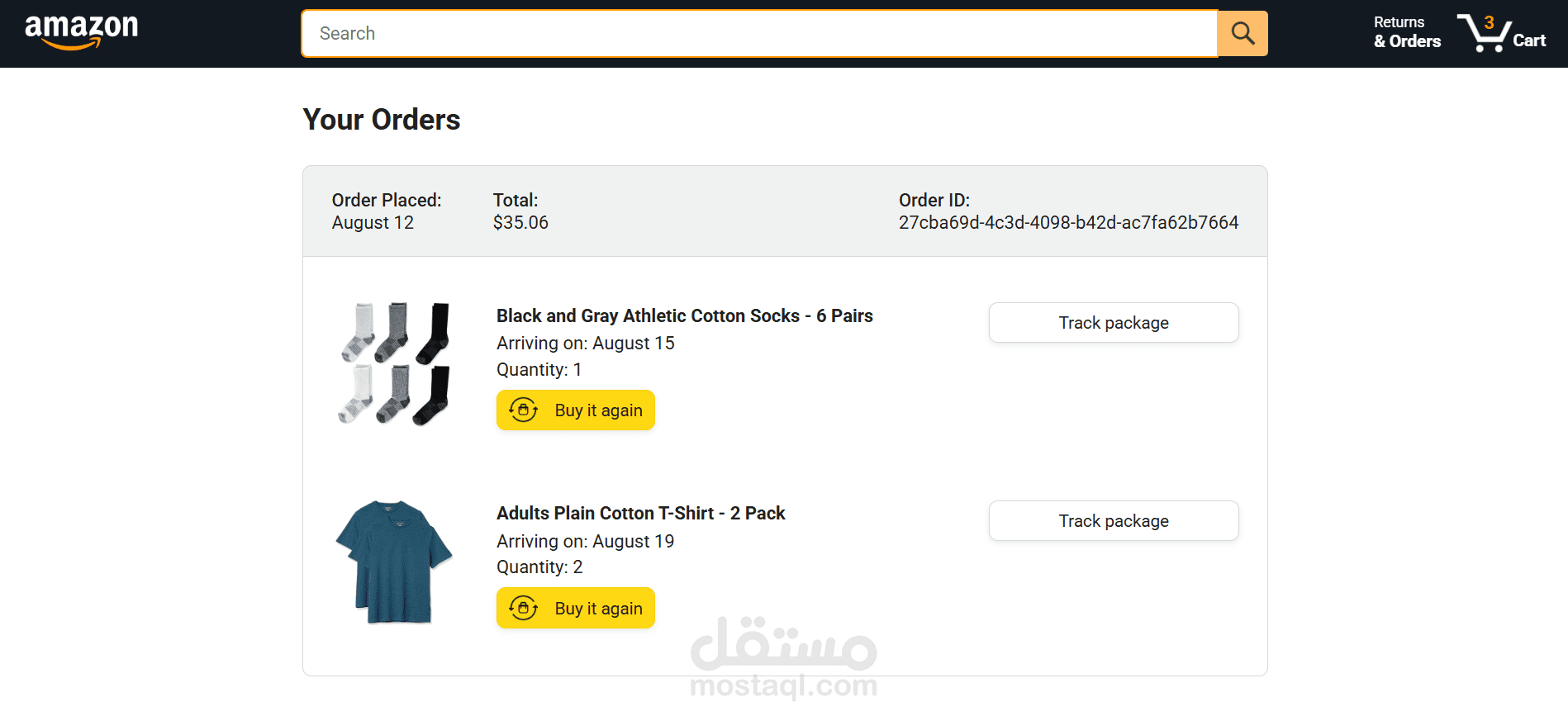 مشروع Amazon Demo هو نموذج تجريبي لموقع تسوق إلكتروني مستوحى من تصميم موقع أمازون. يهدف المشروع إلى محاكاة تجربة المستخدم في تصفح المنتجات وإدارة واجهة متجر إلكتروني بشكل واقعي.