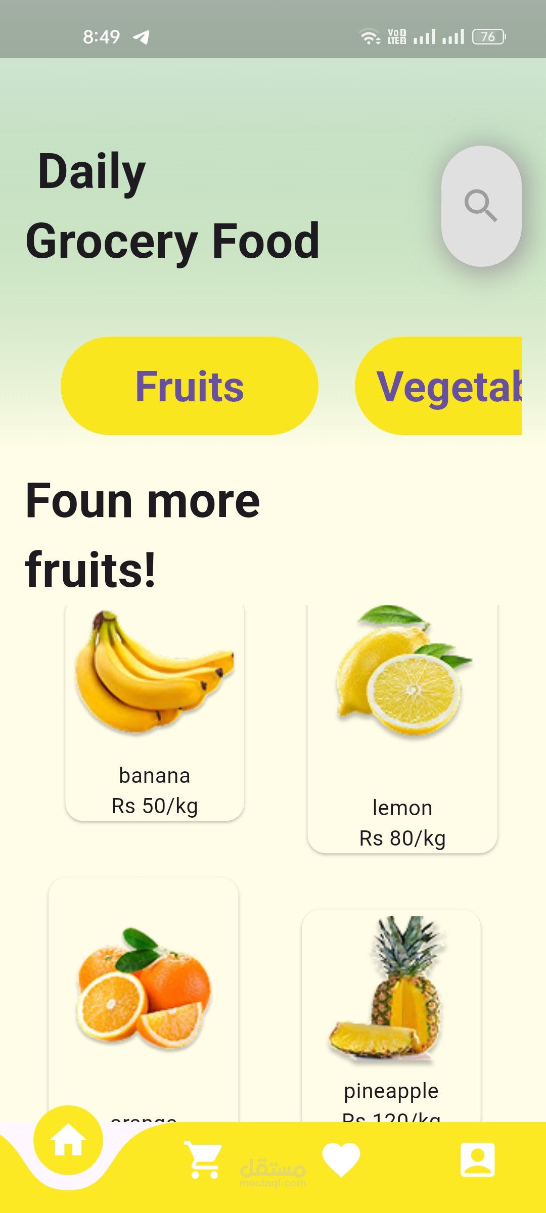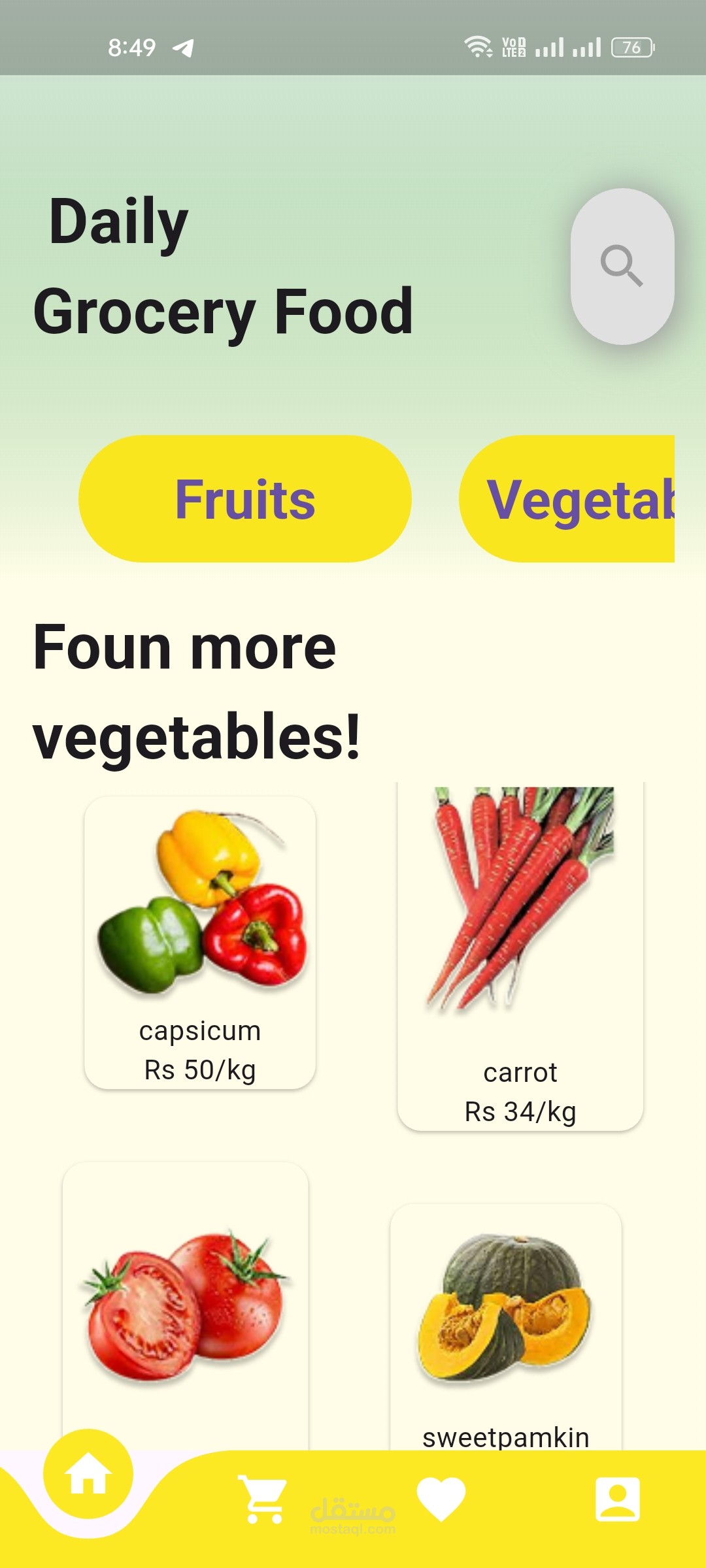 بيق مخصص لبيع الخضروات والفواكه الطازجة، يهدف إلى تسهيل عملية الشراء والطلب للمستخدمين من خلال واجهة بسيطة وسهلة الاستخدام.