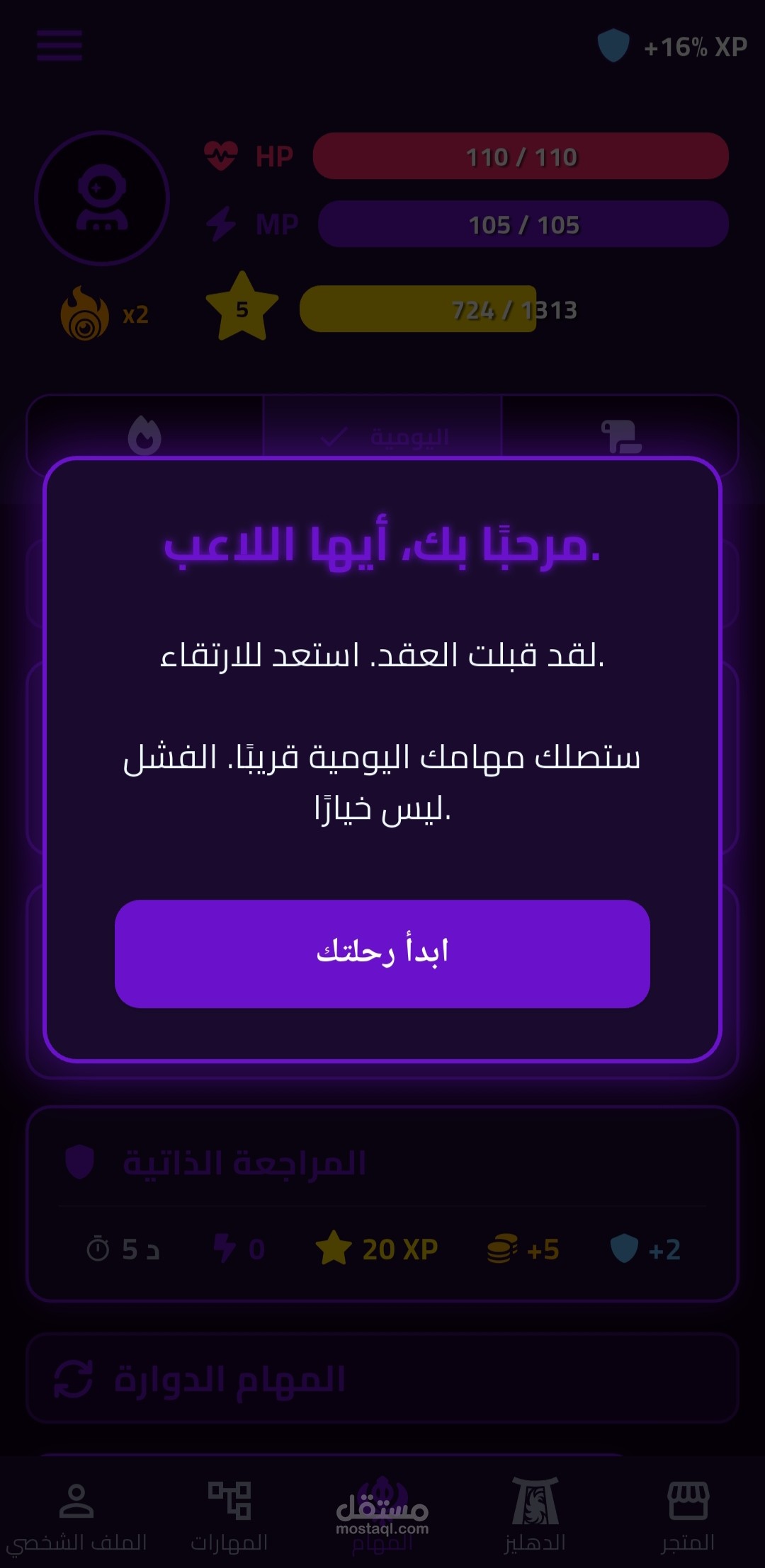 الفكرة الأساسية للتطبيق هي تحويل الحياة إلى لعبة، بحيث يصبح المستخدم هو البطل الرئيسي الذي يرتقي في مستواه من خلال تنفيذ المهام الواقعية وتطوير نفسه يومًا بعد يوم.