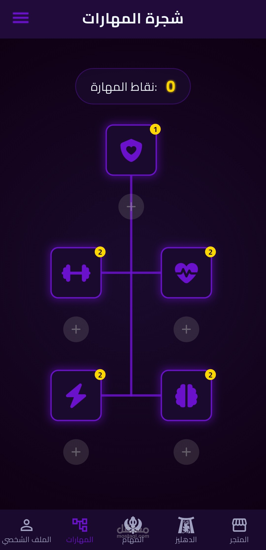 شجرة المهارات (Skill Tree): لتتبع التقدم الشخصي وتطوير القدرات.