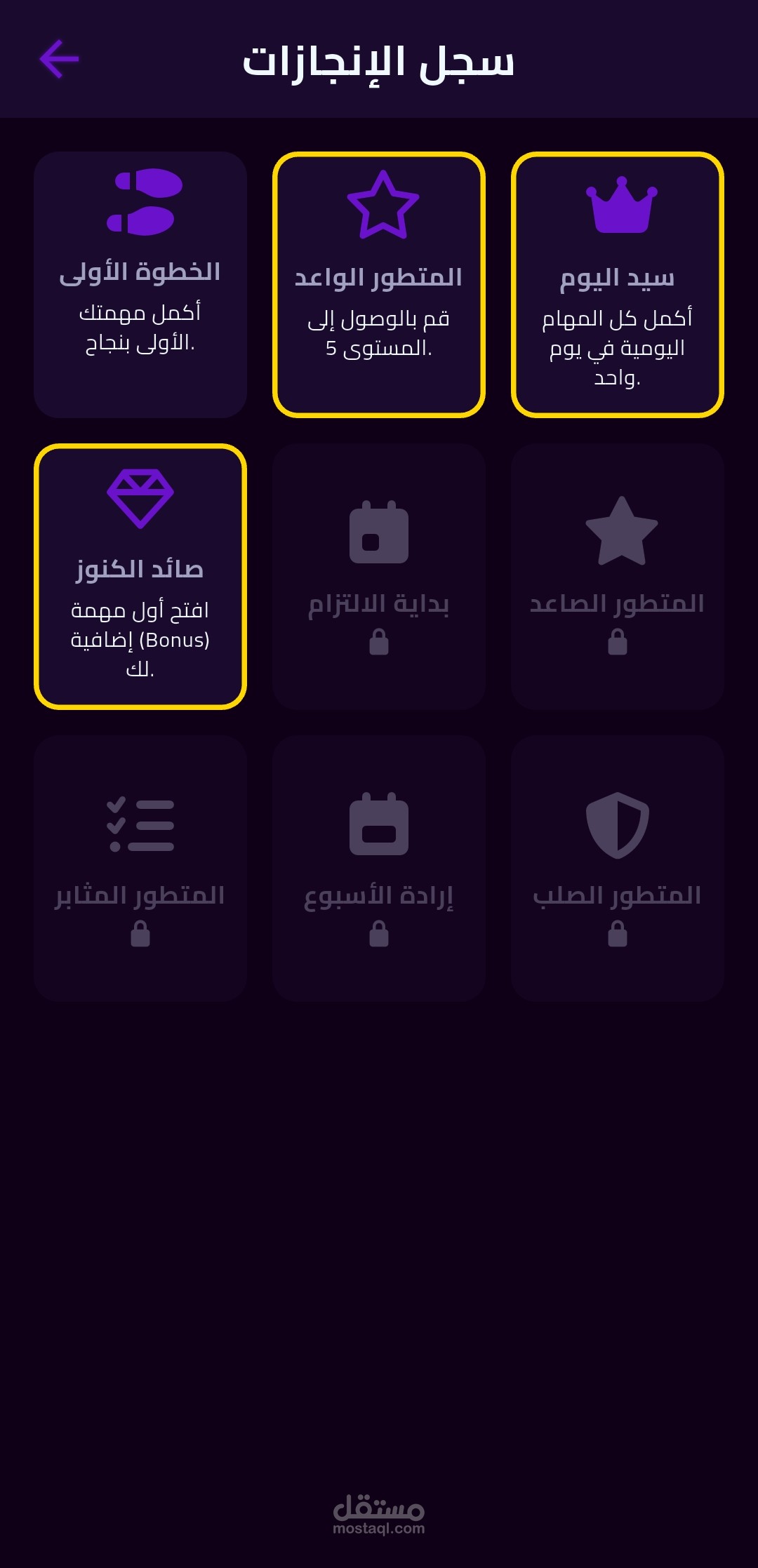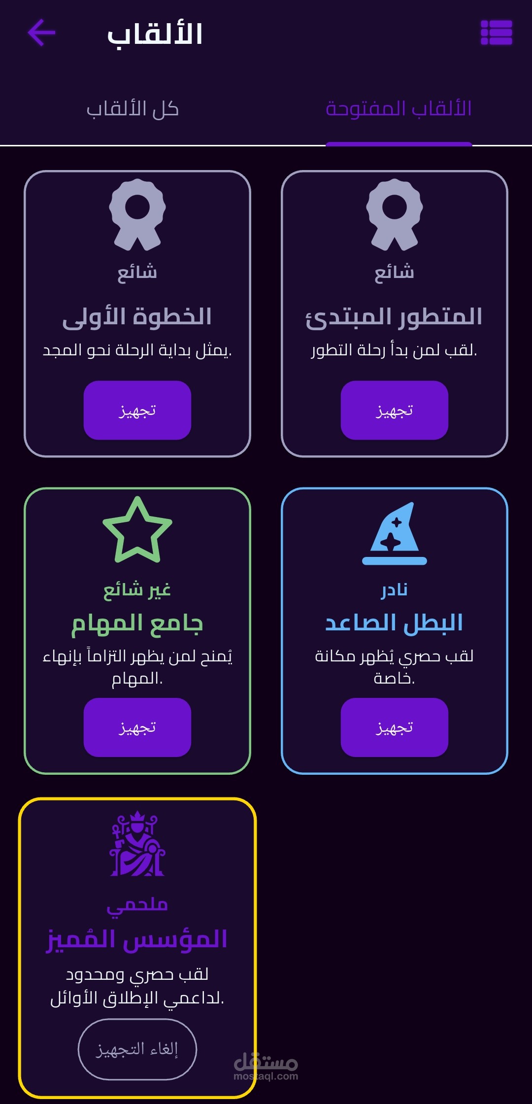 الإنجازات والألقاب والمكافآت: لتحفيز الاستمرارية والمثابرة.