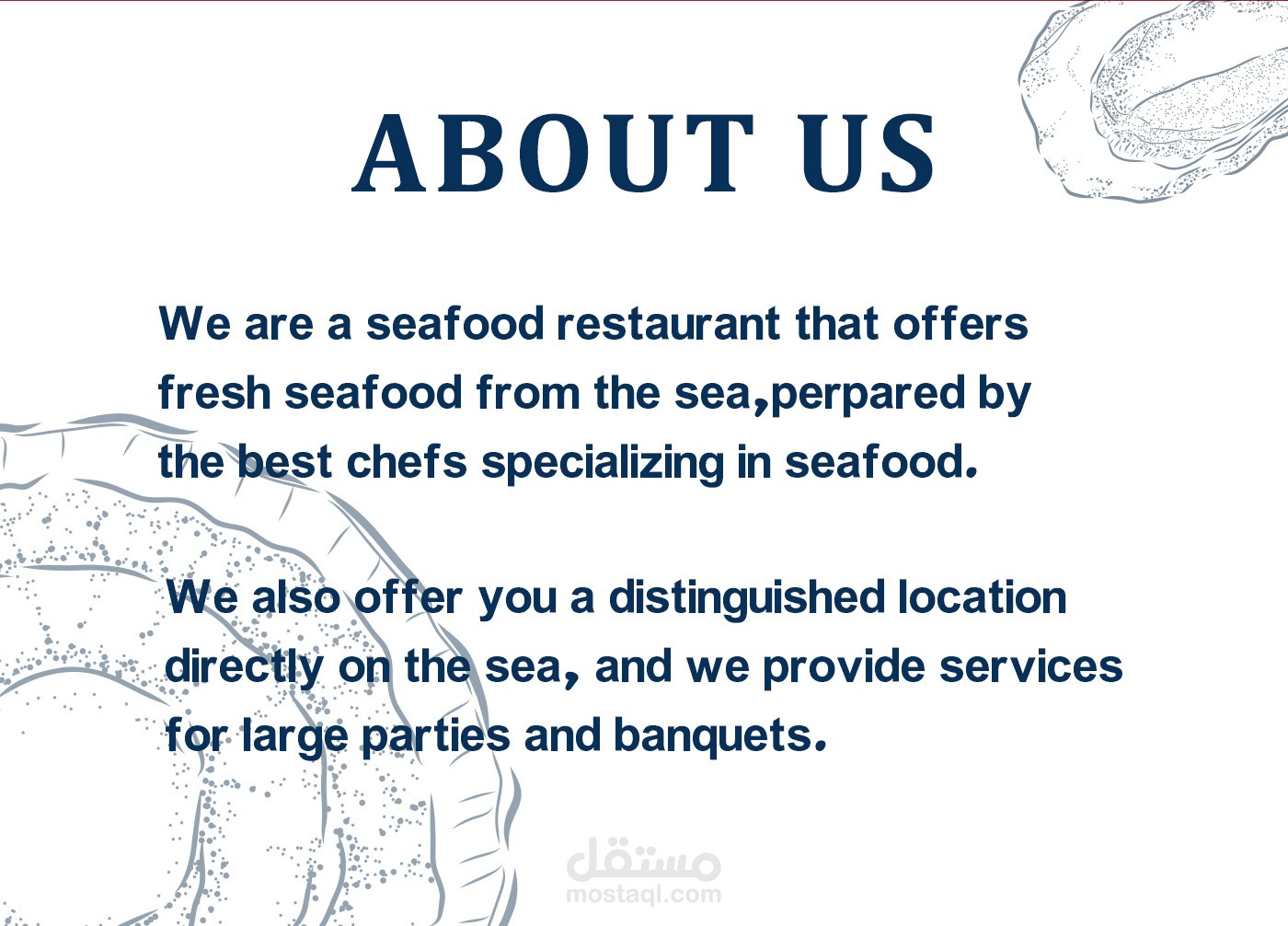في هذا المشروع، قمت بتصميم هوية بصرية متكاملة لمطعم Costa المتخصص في المأكولات البحرية، بهدف إبراز روح البحر والمذاق الفريد بطريقة عصرية تعكس الجودة والتميز.
