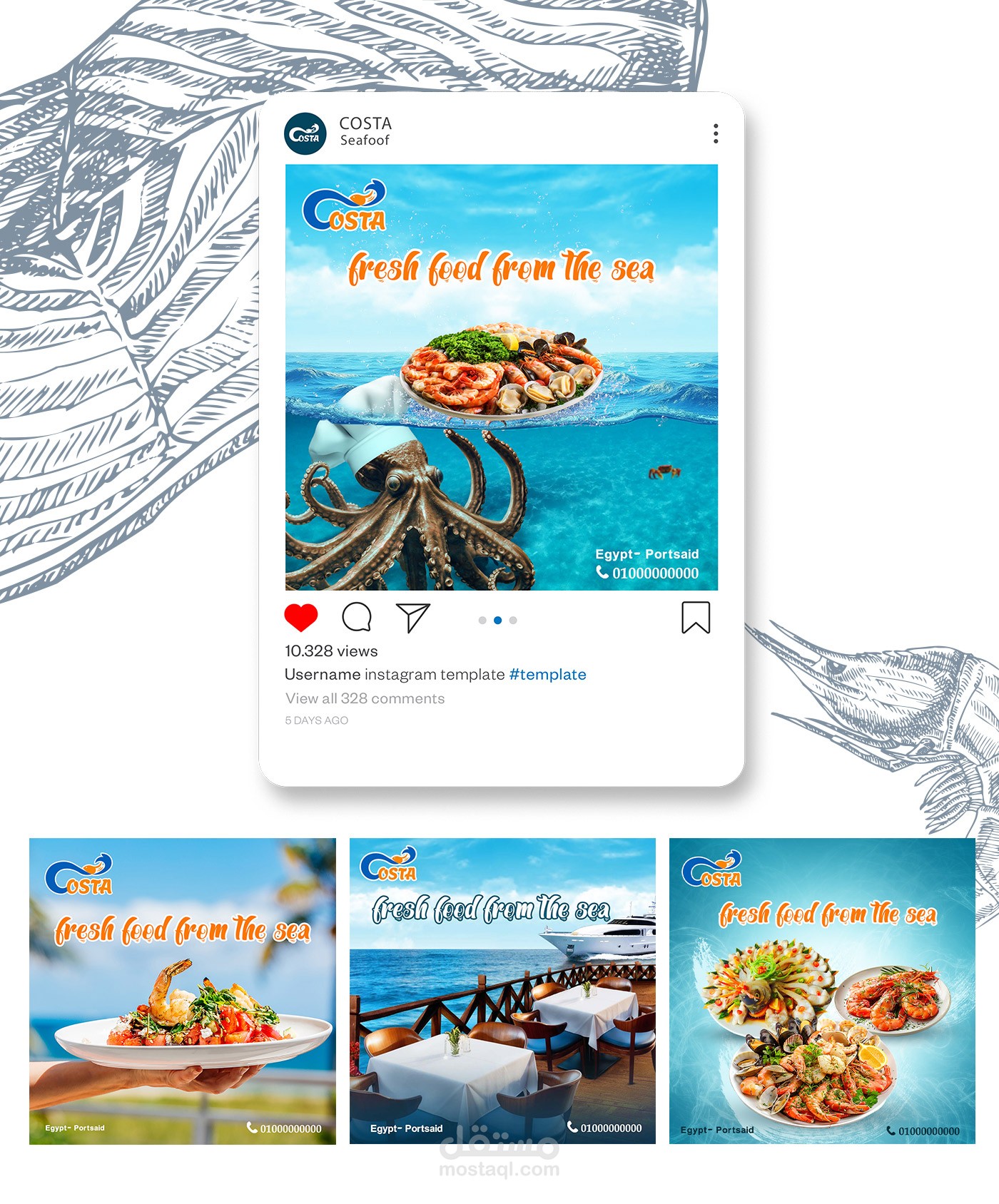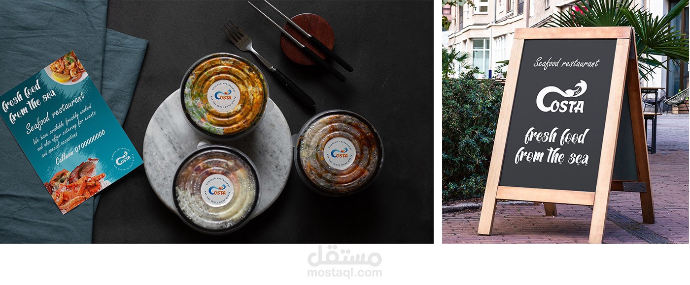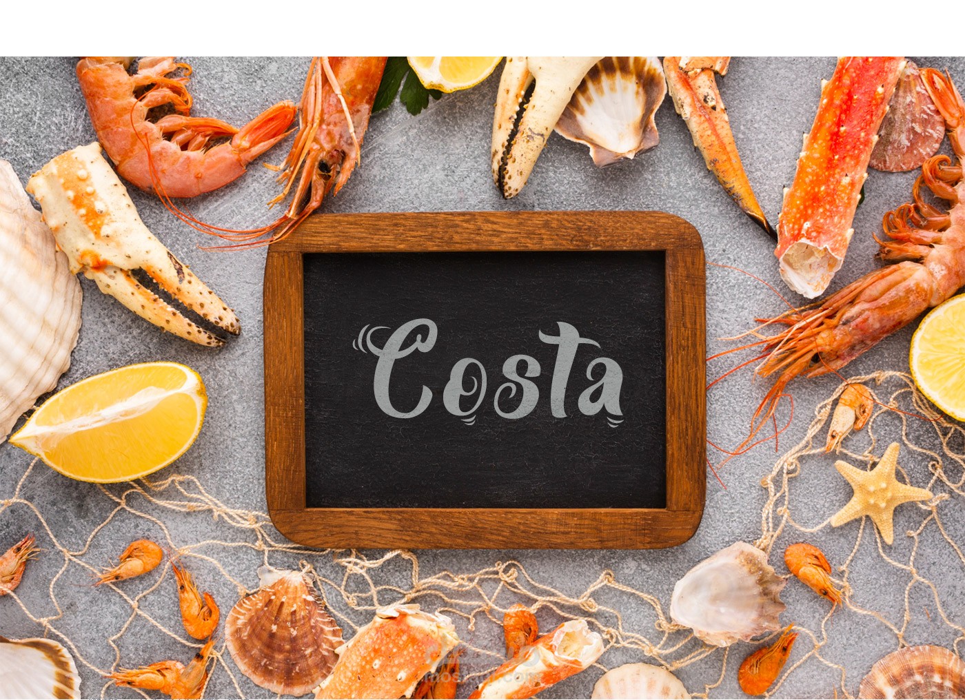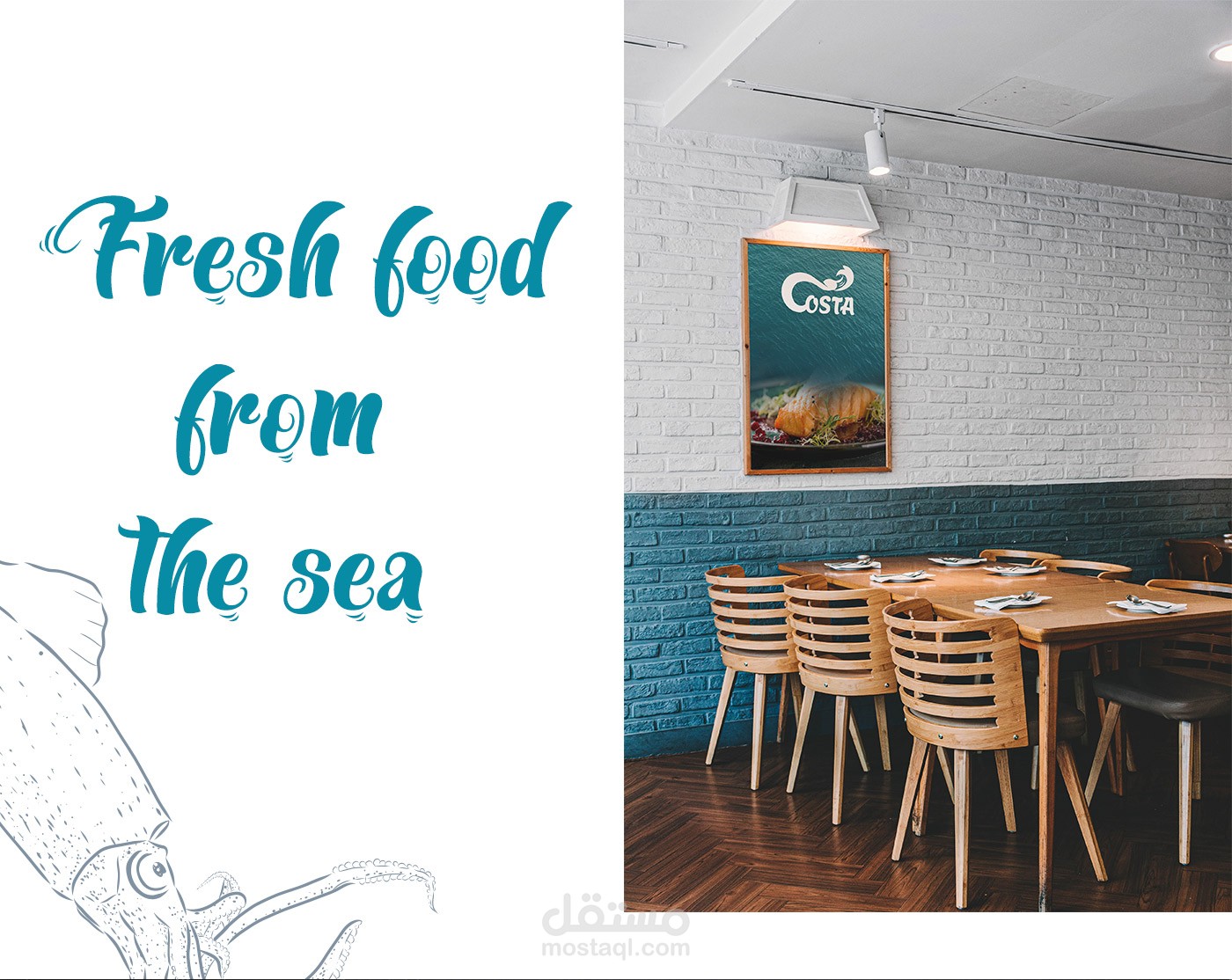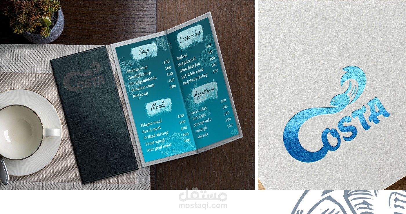 مشروع تصميم هوية بصرية كاملة لمطعم Costa للمأكولات البحرية