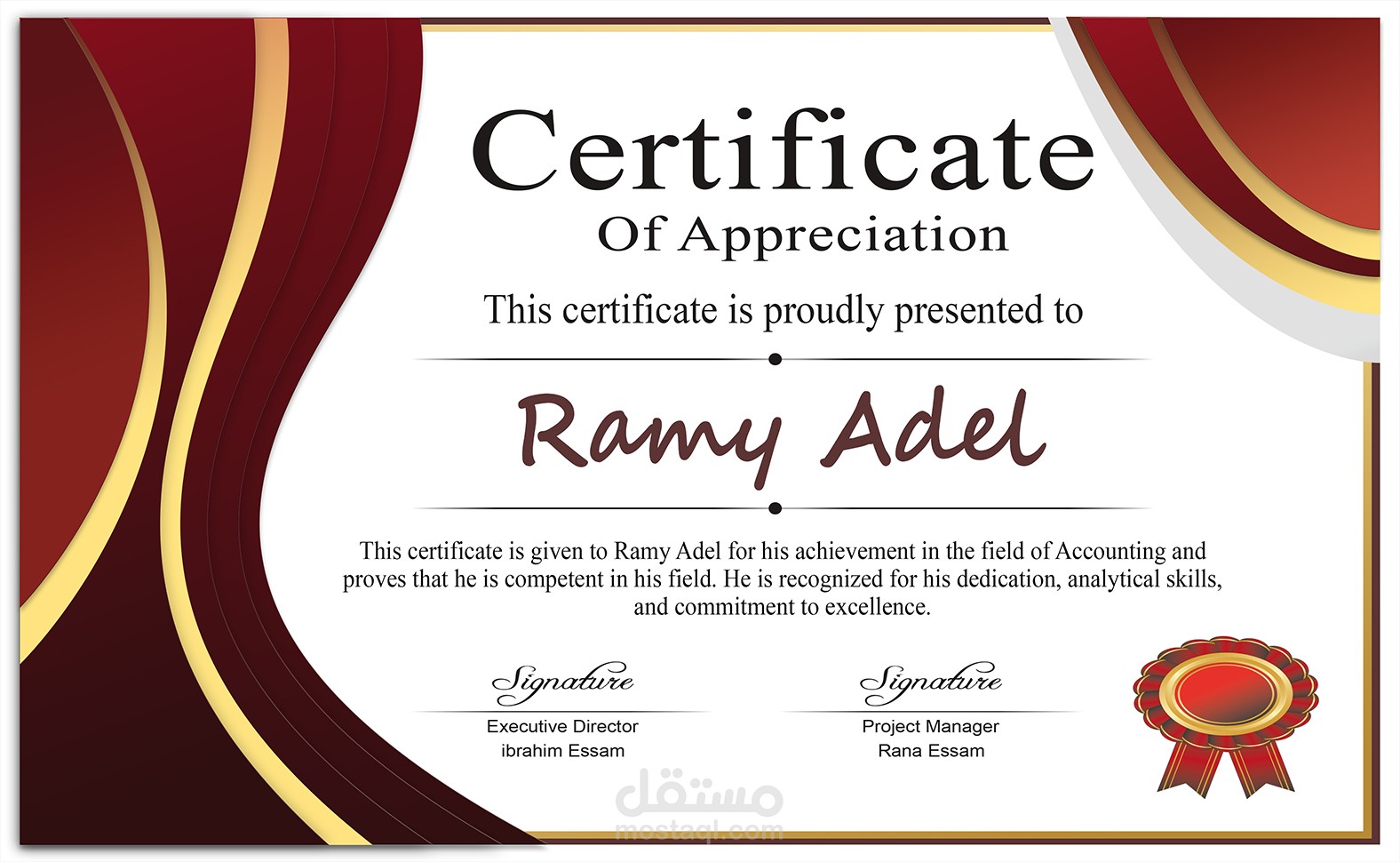 اهتمام بأدق التفاصيل من حيث التوازن اللوني وتناسق النصوص والخطوط لضمان أن كل شهادة تبدو فخمة ومقنعة.
