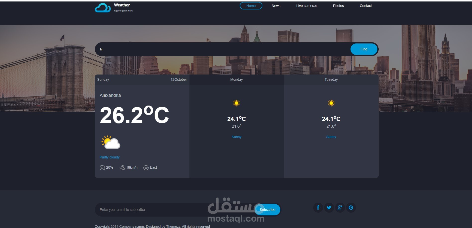 الموقع مرفوع على منصة Netlify، وبيستخدم HTML – CSS – JavaScript (مع احتمال استخدام React) لهيكلة المشروع وتنفيذه، بالإضافة إلى API خارجي للطقس مثل OpenWeatherMap.