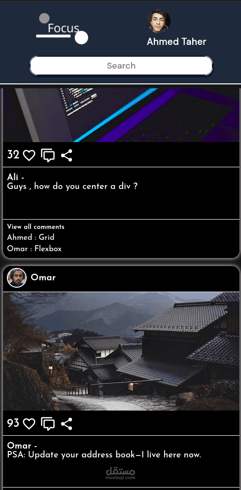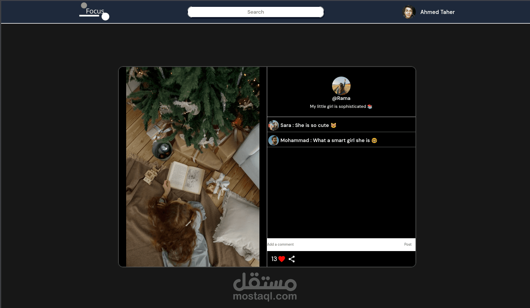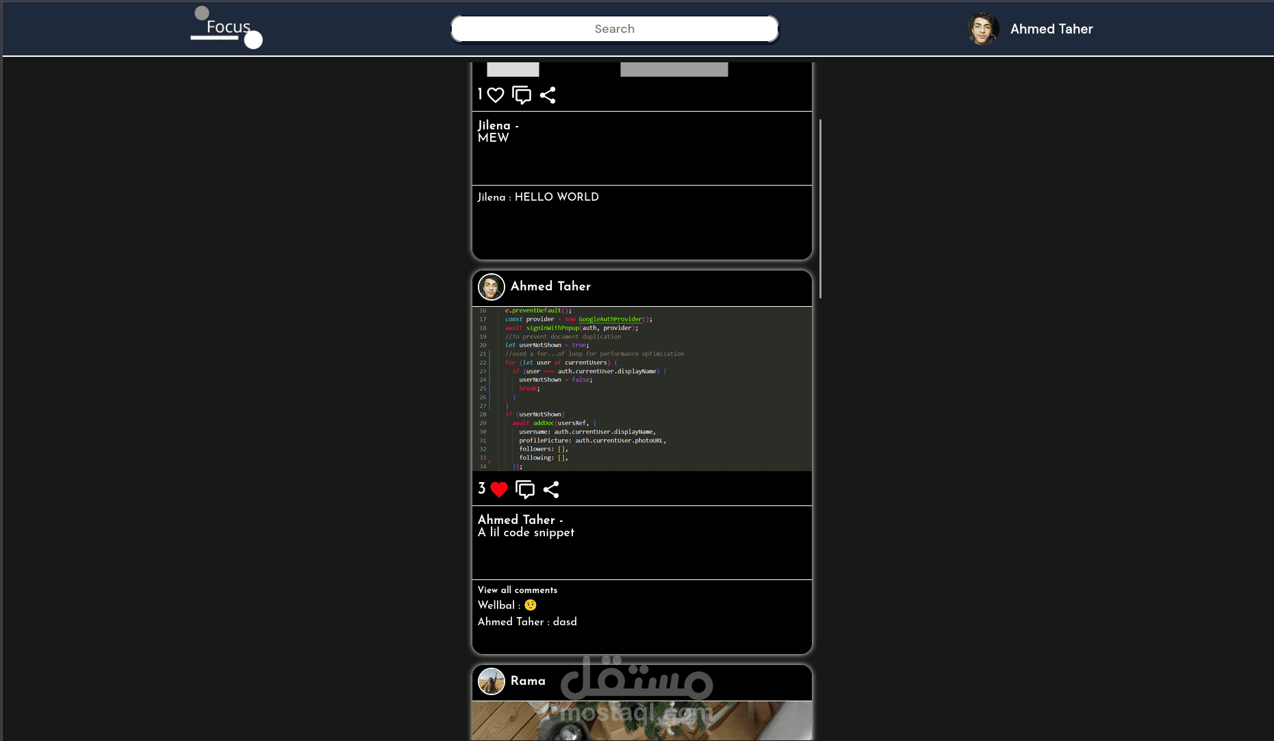 قمت بتصميم تطبيق أحادي الصفحة (Single-Page Application) باستخدام React بالاعتماد على Firebase كخدمة خلفية (Backend-as-a-Service) لتقديم تفاعلات اجتماعية فورية تشمل تحديثات لحظية في الـ feed، وتمريراً لا نهائياً للمنشورات، واستجابات أقل من ثانية لجميع تفاعلات المستخدمين.