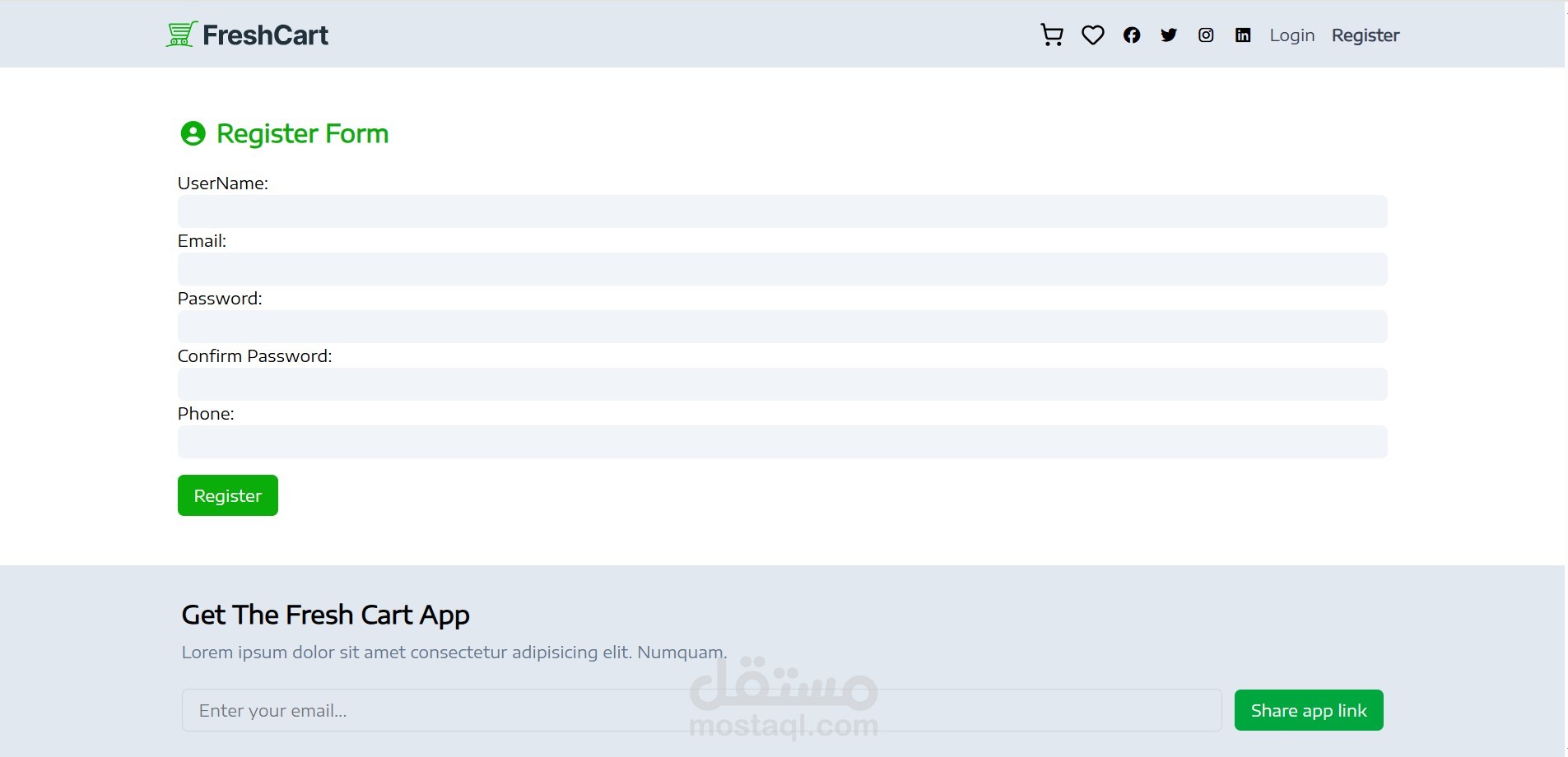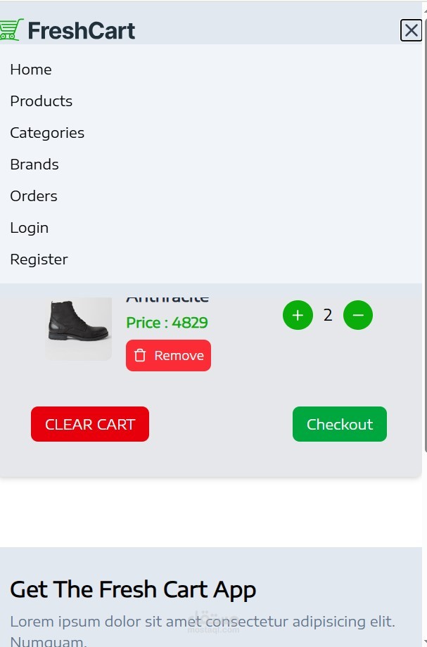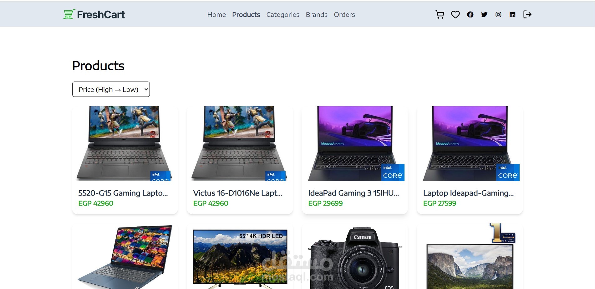 Fresh Cart هو تطبيق ويب متكامل خاص بالتجارة الإلكترونية تم تصميمه وتطويره لتقديم تجربة تسوّق احترافية وسهلة الاستخدام.