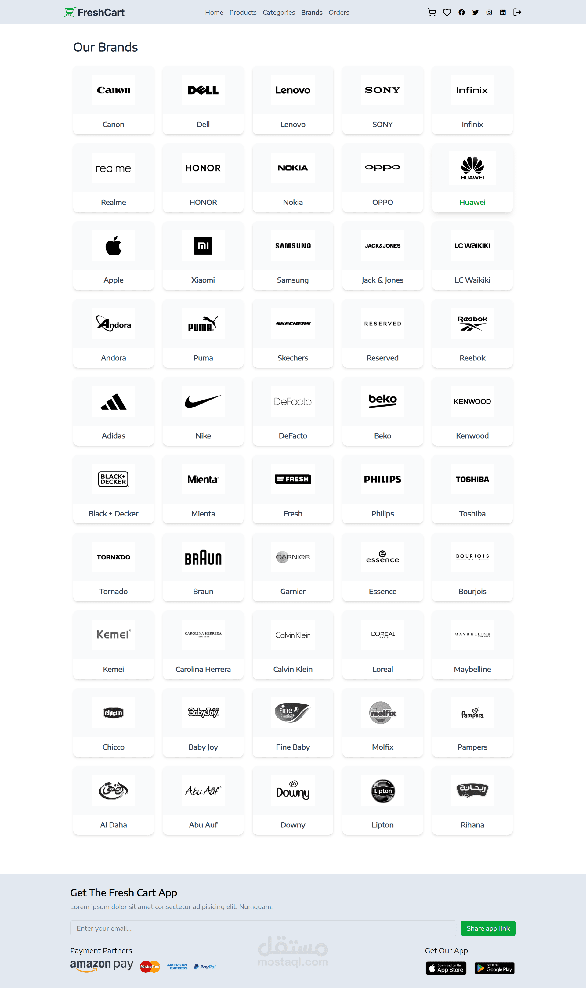Brands: عرض المنتجات حسب العلامات التجارية المختلفة.
