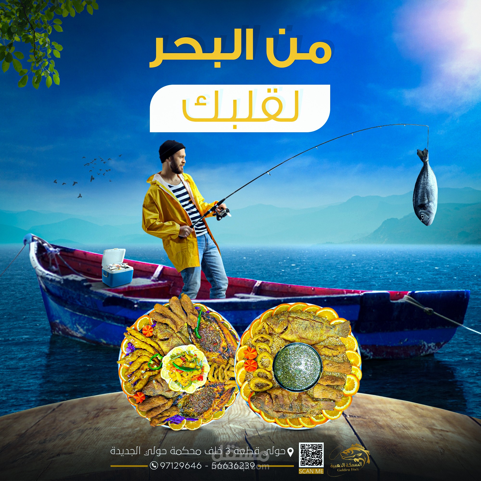 تصميم بوست سوشيال ميديا فوتومنبليشن لشركة السمكة الذهبية ( الكويت )