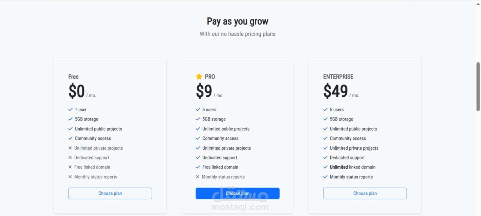 تنظيم المحتوى باستخدام Bootstrap Grid وComponents لعرض الأقسام المختلفة مثل Showcase, Features, Pricing, Testimonials, Contact.
