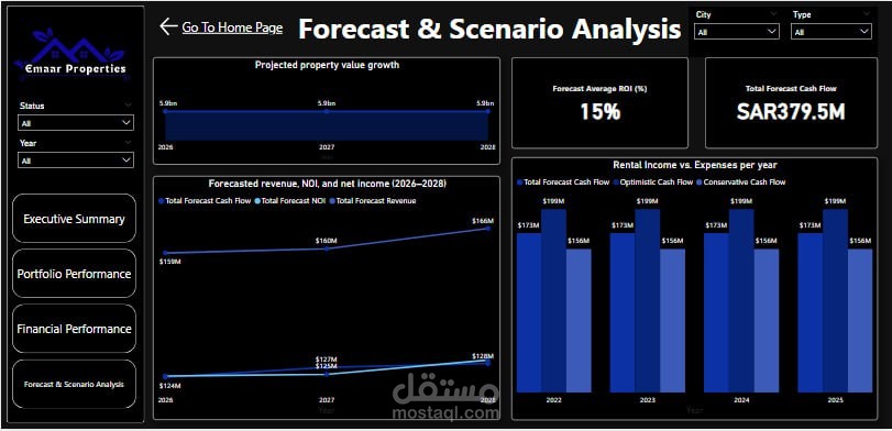 * Strategic Future Projections (2026-2028): In-depth forecasting of Revenue, Net Income, Cash Flows, and Property Value Growth, complete with Base, Optimistic, and Conservative scenario comparisons to inform strategic decision-making.