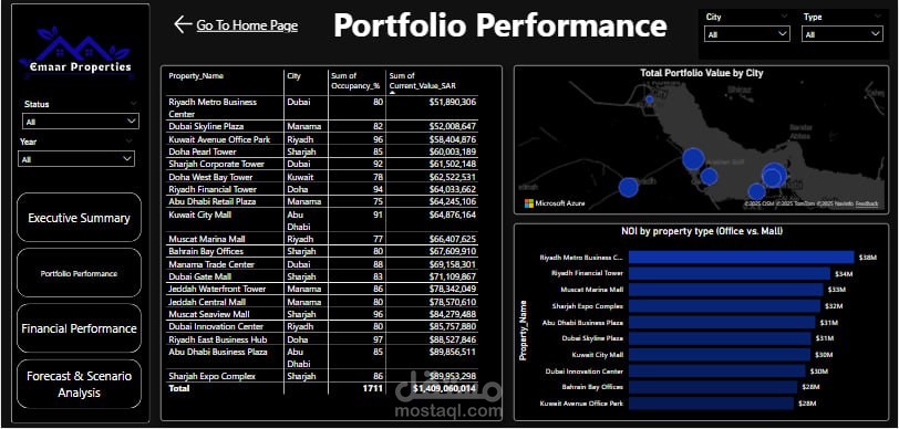 * Comprehensive Performance Evaluation: Detailed tracking of key metrics like ROI, IRR, NOI, and Occupancy Rates across all properties and portfolio-wide.