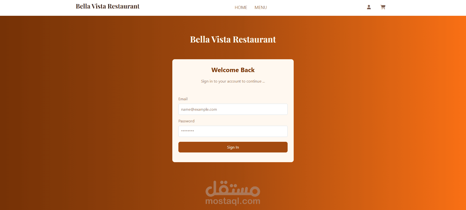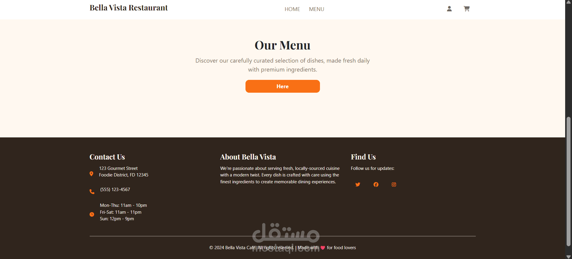 تصفّح بسيط وسلس بين: Home – Menu – Cart – Login
